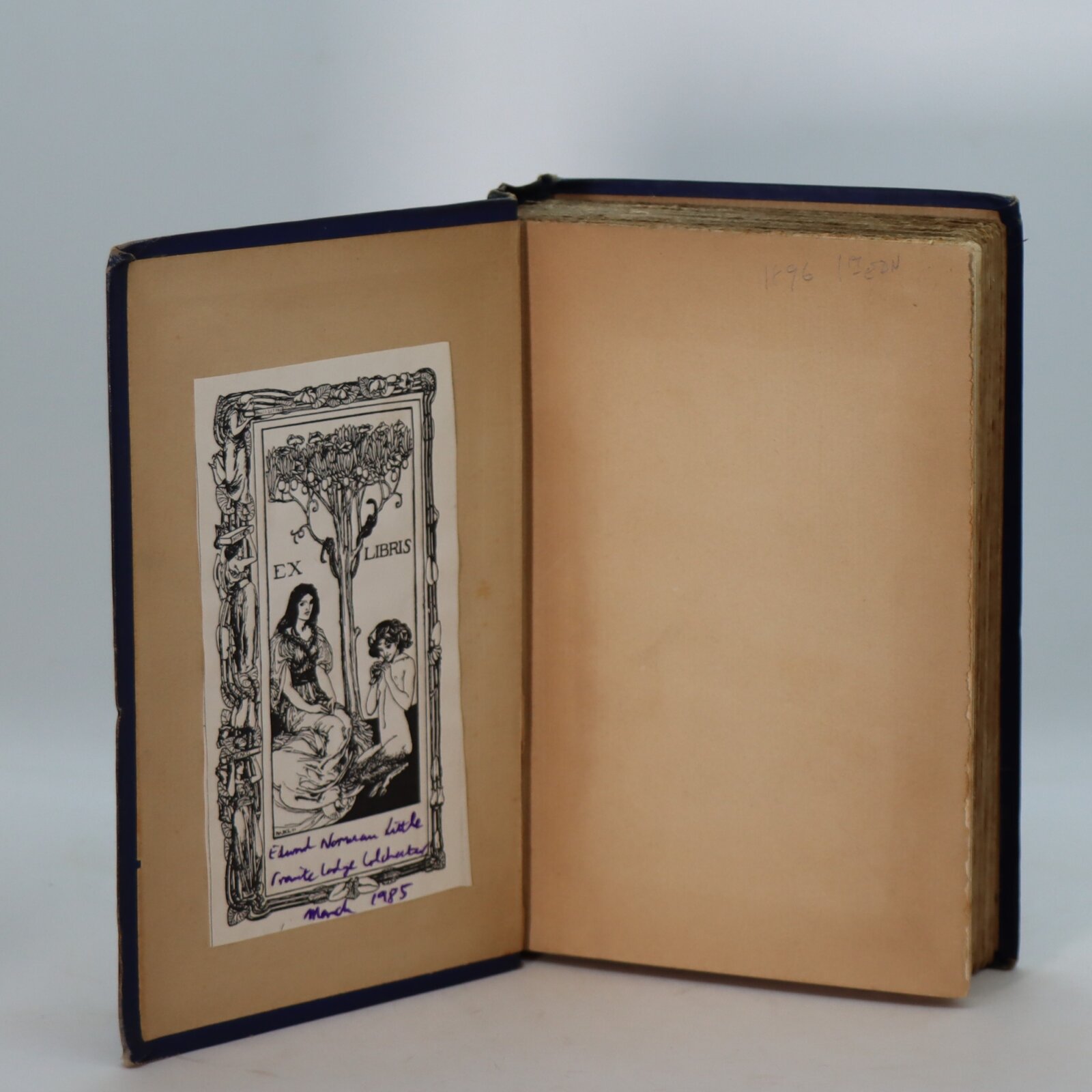 Navy cloth binding with gilt title on the spine. Gilt image of a lady and dog on the front board.