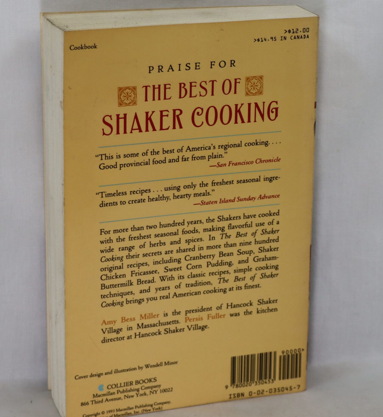 A fresh generation of regional American cooks can now learn the time-tested secrets of Shaker farm kitchens with this paperback edition of the classic “The Best of Shaker Cooking”, with recipes including cranberry bean soup, Shaker chicken fricassee, sweet corn pudding, and graham-buttermilk bread. All of the recipes are easy to prepare, and feature the natural ingredients that Shaker cooks have relied on for centuries. Amy Bess Miller is the president of Hancock Shaker Village, and Persis Fuller was the kitchen director at Hancock Shaker Village.