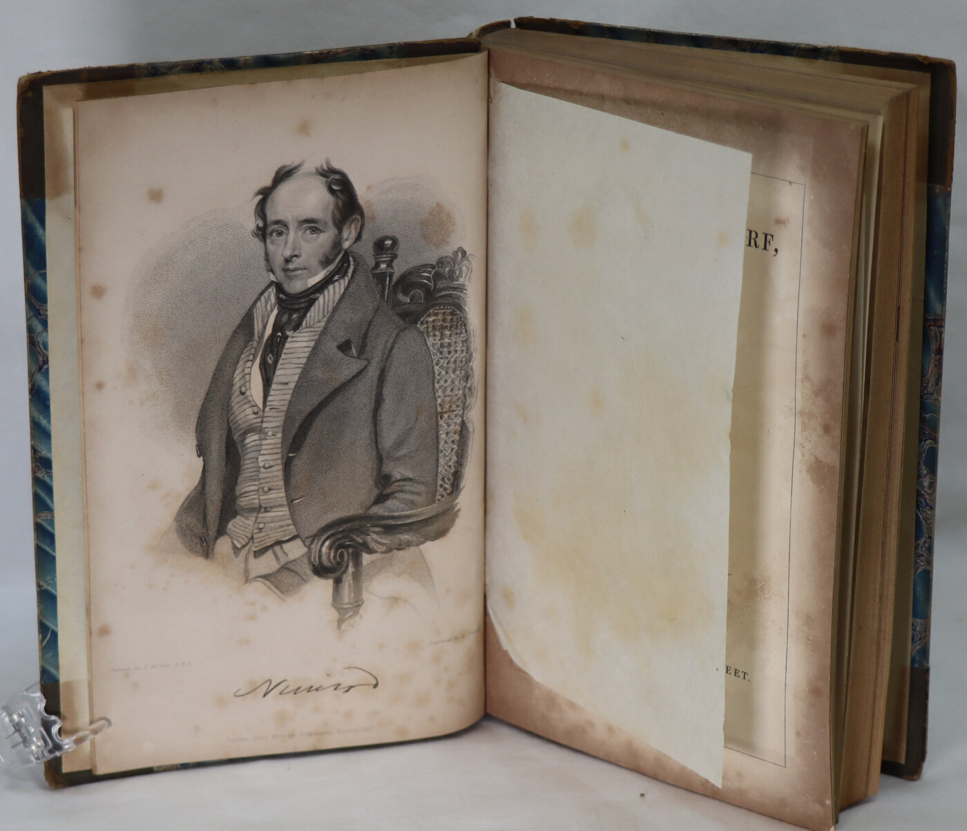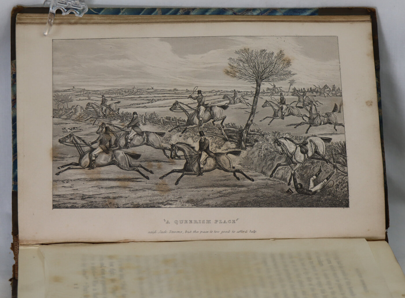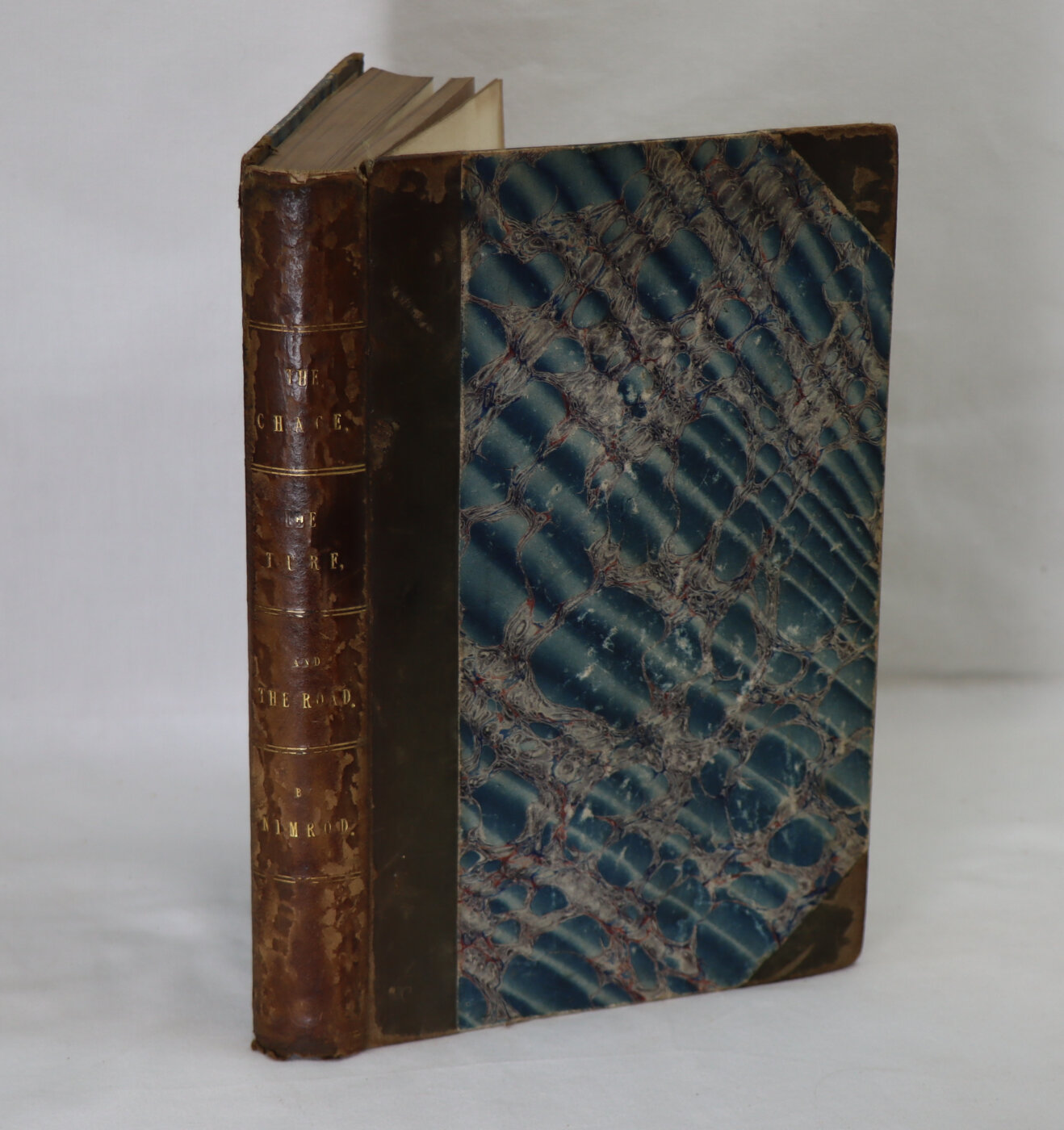 Brown calf spine with gilt banding and title. Blue marbled boards. illustrated by Henry Alken.