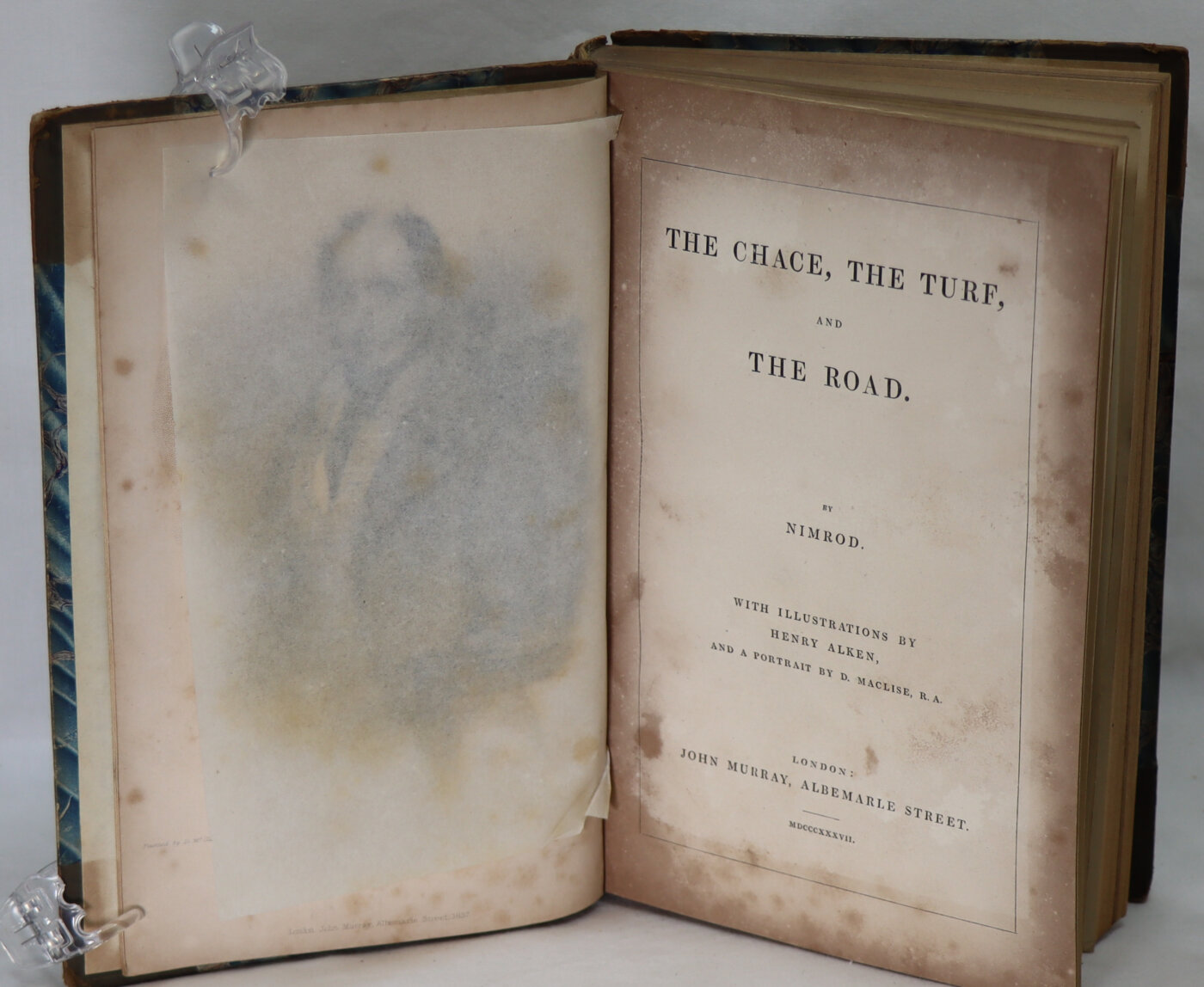 Hardcover. Condition: Good. FIRST EDITION. Nicely bound as illustrated in the photographs. The three parts cover fox hunting, coach driving and horse racing and originally appeared in the Quarterly Review of 1835 and in book form, 1837. Nimrod was the pseudonym of the Welsh fox hunter, later sporting writer, Charles James Apperley (1785-1843). Henry Thomas Alken (1785-1851) was a painter and engraver of sporting scenes, who often co-operated with Nimrod. The engravings within this volume are clean though much of the book’s interior requires delicate refurbishment to enhance its value.