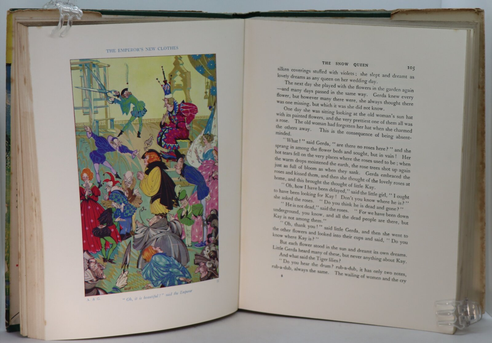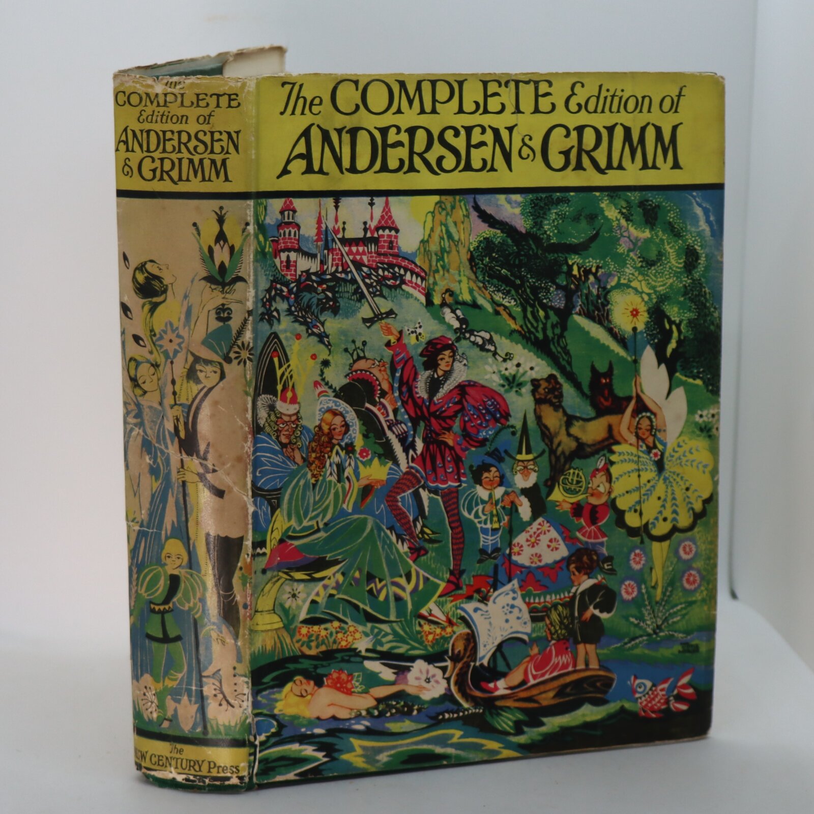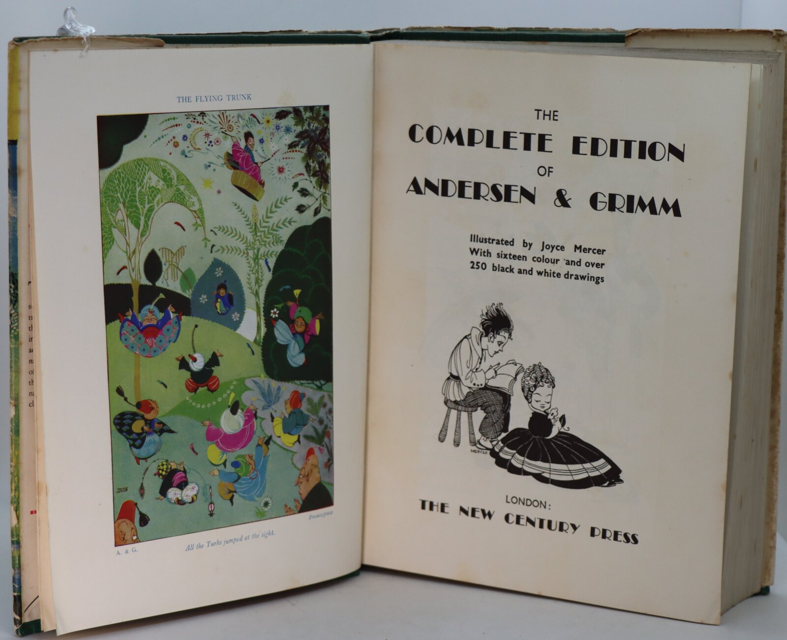 Rare very good example in near very good original wrapper. From front flap summary: “The exquisite art of Miss Joyce Mercer has never found a more suitable medium than the illustration of these famous tales. Although children enjoy the stories in themselves, there is a great advantage in having them illuminated with the wit and understanding of Miss Mercer’s imagination, for they enable the youthful mind to envisage with greater clarity the characters and incidents in the stories, and we do not doubt that this will be accepted as the edition of Andersen and Grimm.” The complete edition with 318 and 252 pages.