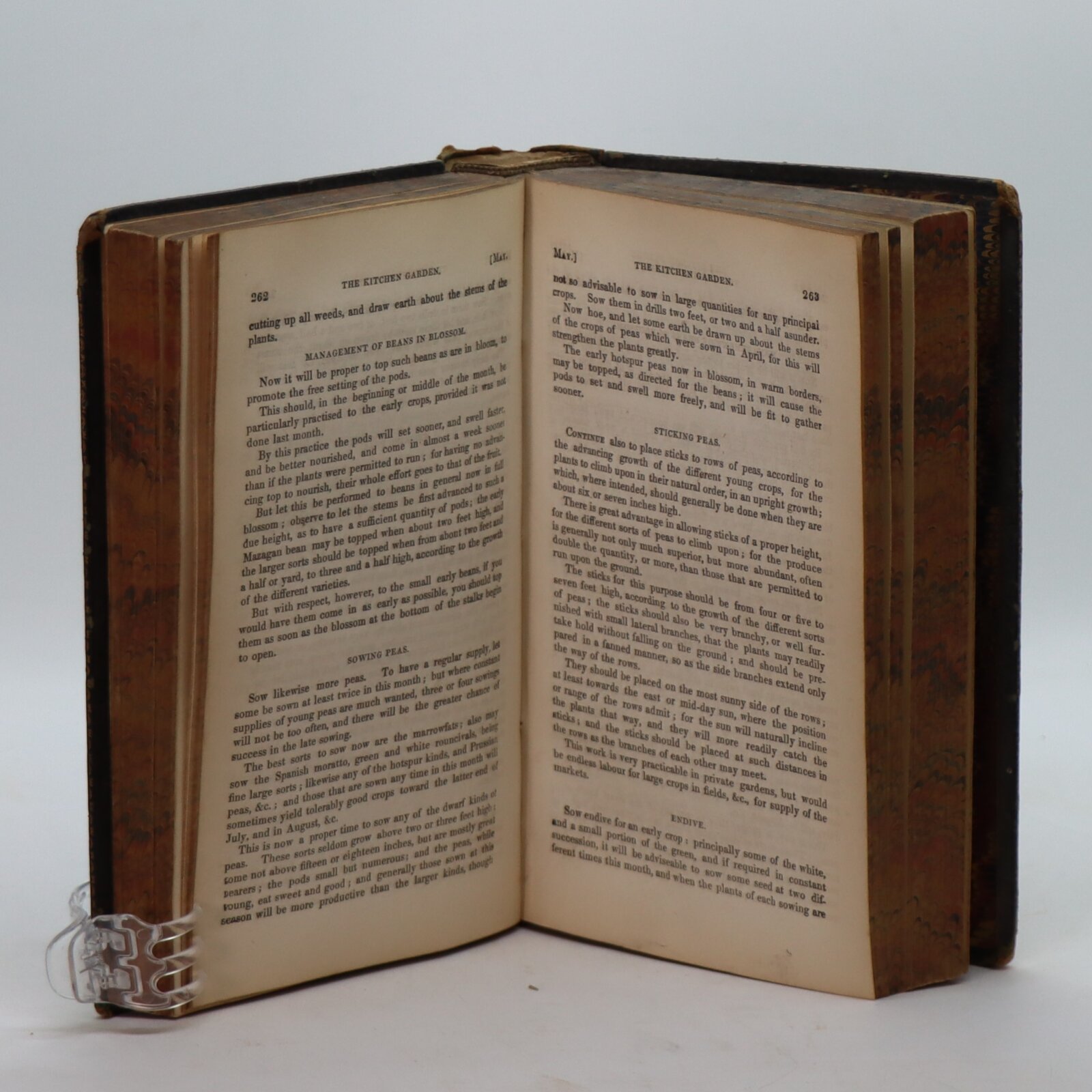 A popular gardening text of the 18th century with chapters divided into months of the year. Thomas Mawe, ‘the gardener to the Duke of Leeds’, was not the author. John Abercrombie, who was the author, was a Scottish horticulturist and one of the most prolific gardening writers of the period. Abercrombie’s name did not appear as author until the 7th edition of 1776.Later editions to the 1776 being a New, and much more Complete Gardener’s Calendar than any one hitherto published. Containing Not only an Account of what Work is necessary to be done in the Hot-House, Green-House, Shrubbery, Kitchen, Flower and Fruit-Gardens, for every Month in the Year; but also ample Directions for performing the said Work, according to the newest and most approved Methods now in Practice among the best Gardeners, particular Directions are given with respect to Soil and Situation; and to the Whole is added, complete and useful Lists of Forest Trees, Flowering Shrubs, Fruit Trees, Evergreens. Annual, Biennial, and Perennial Flowers. Hot-House, Green-House and Kitchen Garden Plants. With the Varieties of each Sort, cultivated in the English Gardens.