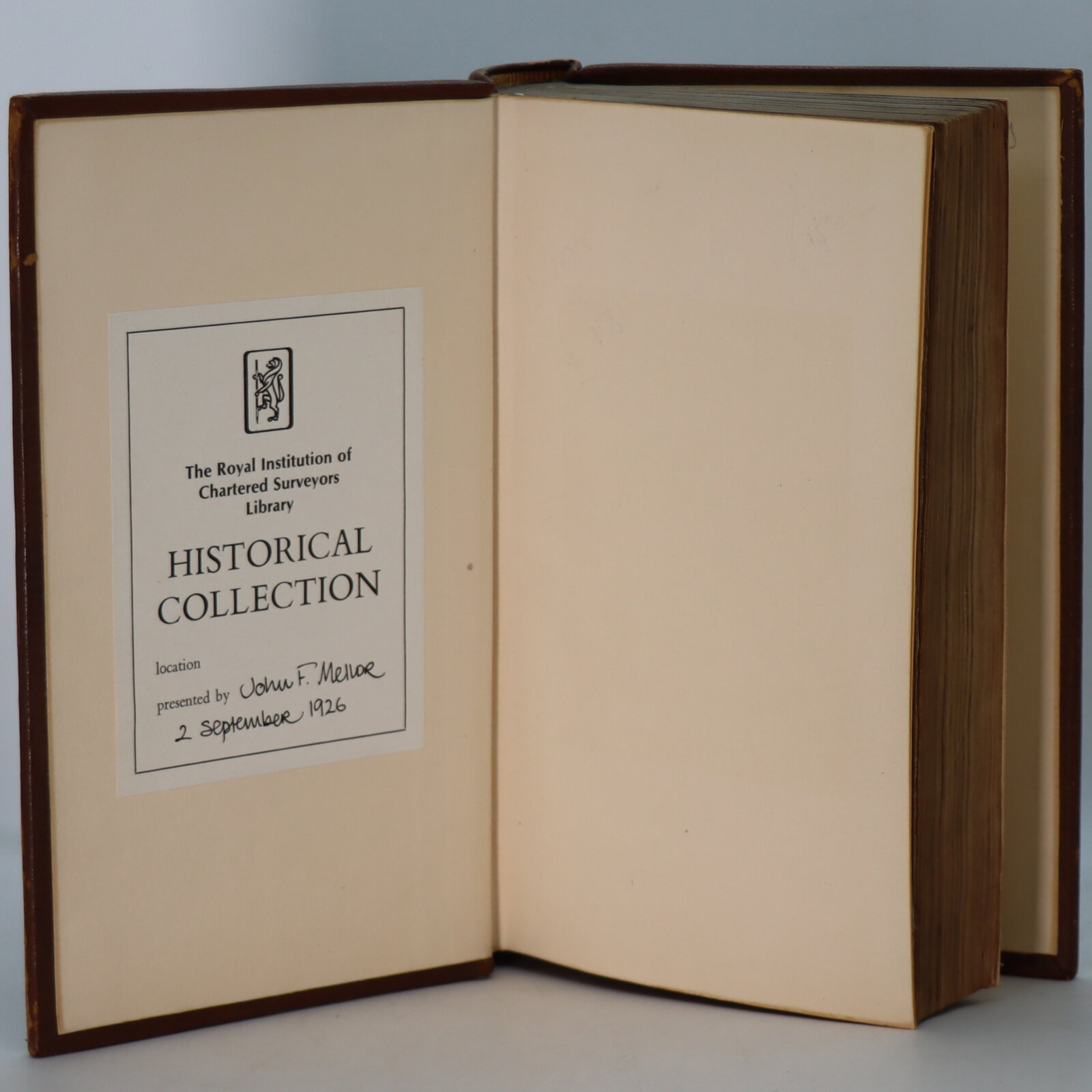 Brown leather binding with red title plate and gilt title. Rebound in 1977 – note on back page. Some plates have been repaired.