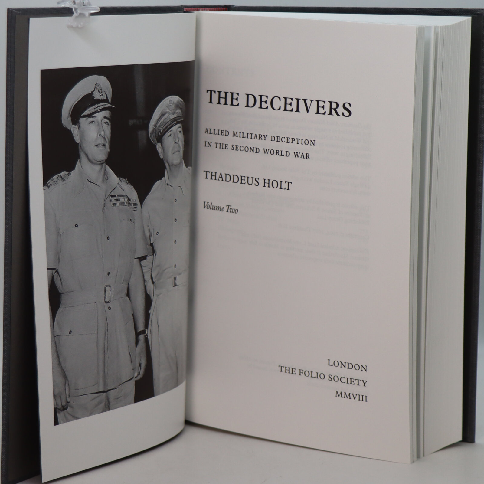 The Deceivers initially focuses on Dudley Clarke, whom the author describes as “the master of the game”. It begins with an account of Clarke’s collaboration with Archibald Wavell in North Africa, and the founding of the ‘A’ Force deception department. The Deceivers then moves to London, where Clarke’s work was coming to the attention of Allied high command, and the foundation of the London Controlling Section; and to Washington and the foundation of Joint Security Control. Holt follows John Bevan and David Strangeways and their work on the largest strategic deception of the war; Operation Bodyguard. Finally, Holt covers the work of Peter Fleming, also collaborating with Wavell, and ‘D Division’ in the Far East. The book contains four appendices (listing all of the Allied deception operations, double agents, fictional divisions and regional maps) which, along with the footnotes, account for a fifth of the material.