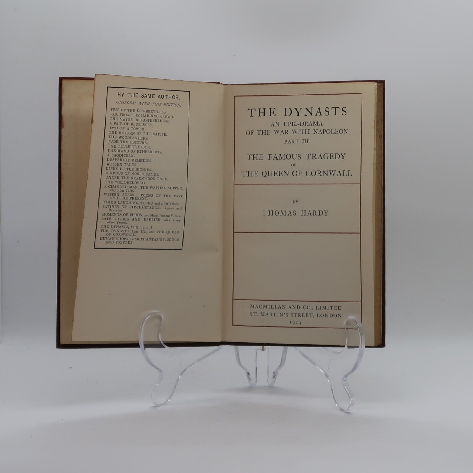 Because of the ambition and scale of the work, Hardy acknowledged that The Dynasts was not a work that could be conventionally staged in the theatre and described the work as “the longest English drama in existence”. Scholars have noted that Hardy remembered war stories of the veterans of the Napoleonic wars in his youth and used them as partial inspiration for writing The Dynasts many years later in his own old age. In addition, Hardy was a distant relative of Captain Thomas Hardy, who had served with Admiral Horatio Nelson at Trafalgar. Hardy consulted a number of histories and also visited Waterloo, Belgium, as part of his research.