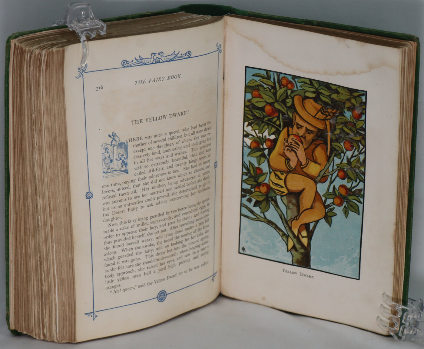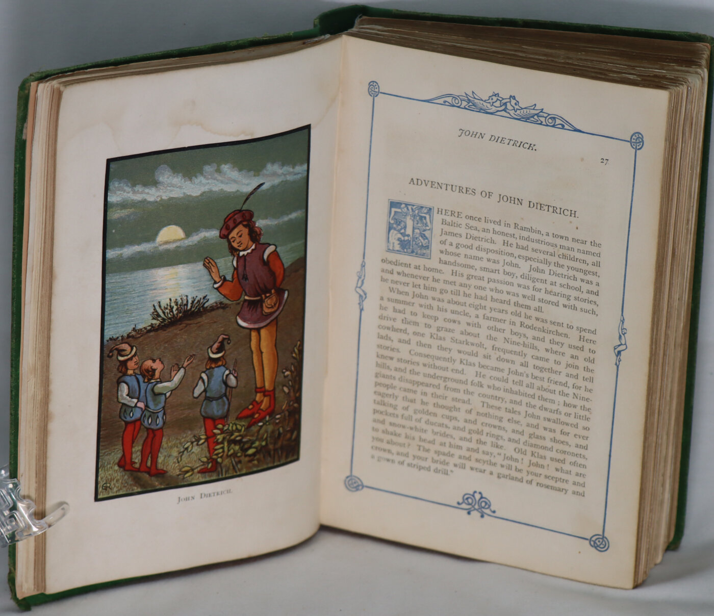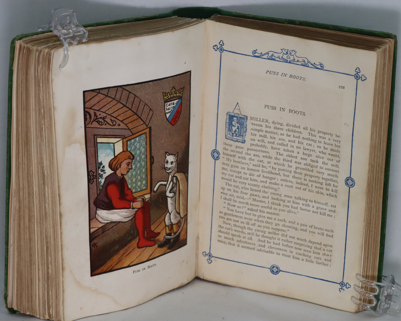 368 pages; A lovely example of this uncommon 19th century book of fairytales. Contents clean and secure in the original publisher’s cloth binding. Illustrated with ten full page color plates. This collection of 36 fairytales includes such classics as The Sleeping Beauty in the Wood, Cinderella, Beauty and the Beast, Jack the Giant-Killer, Rumpelstilzchen, Clever Alice, Little Red-Riding-Hood, Puss in Boots, The Yellow Dwarf, and many more. Dinah Maria Craik (born Dinah Maria Mulock, 1826 1887) was an English novelist and poet. She is best remembered for her novel – John Halifax, Gentleman – which portrays mid-Victorian ideals of English middle-class life.