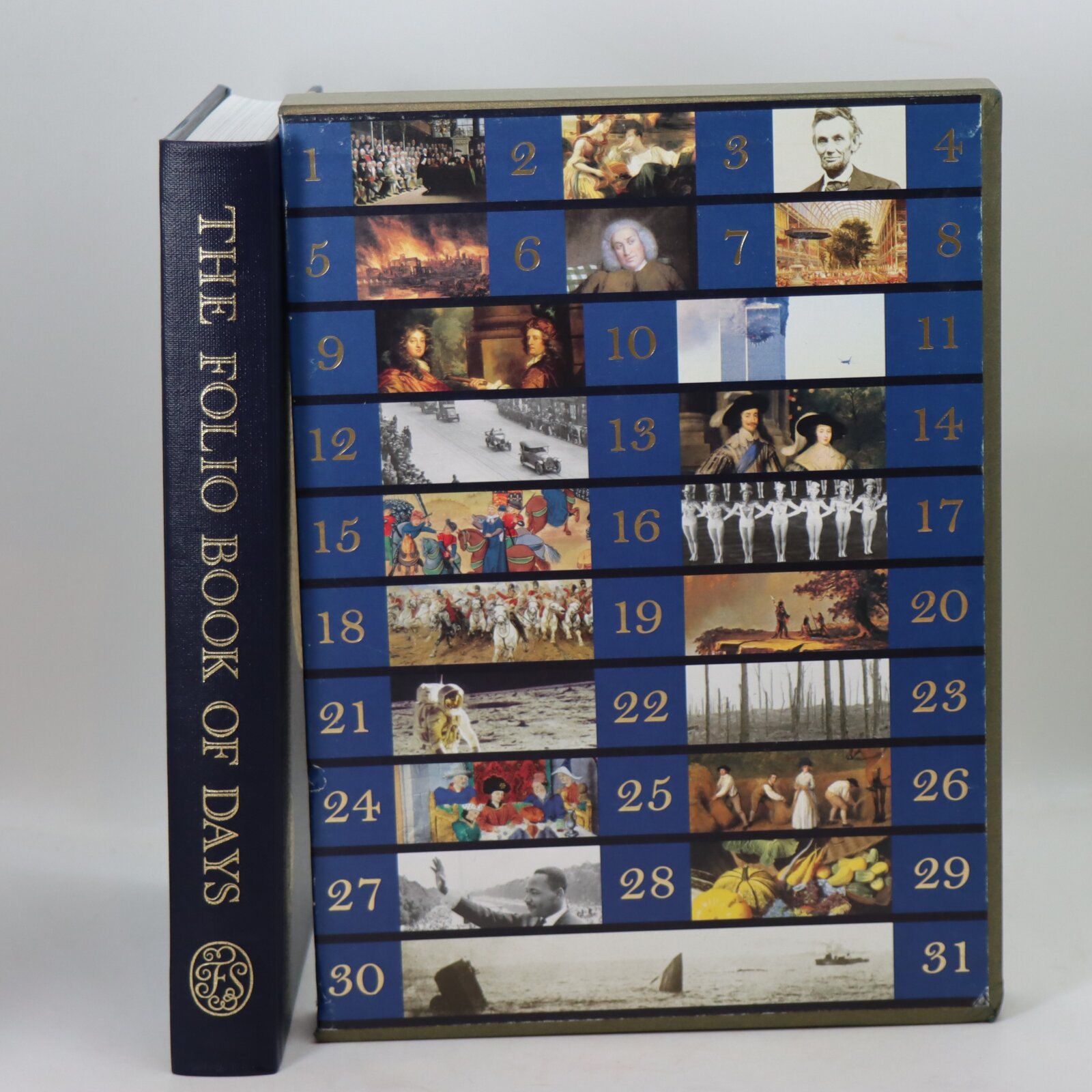 In a fitted box. Blue cloth binding with gilt title on the spine. Gilt circular date dial on the front board.