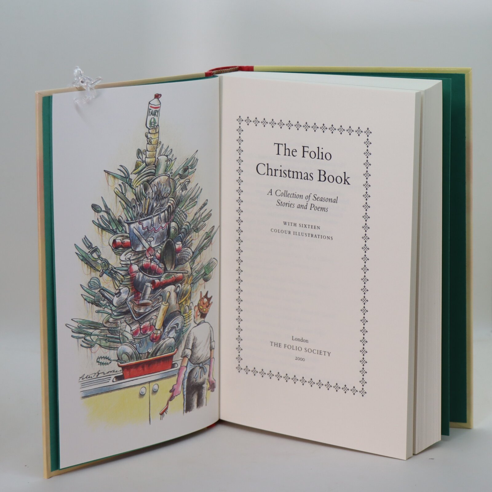 In a fitted box. Red cloth spine with gilt title. Cream boards with images of Santa and snow scenes on the front board.