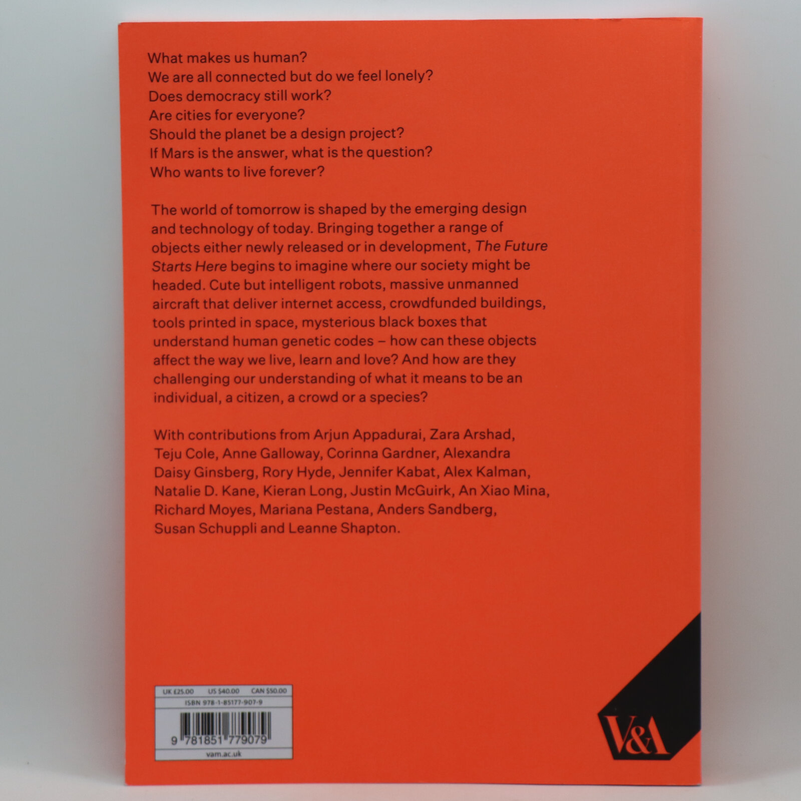 The world of tomorrow is shaped by emerging design and the technology of today. Bringing together a range of objects either newly released or in development, The Future Starts Here begins to imagine where our society might be headed. Cute but intelligent robots, massive, unmanned aircraft that deliver internet access, crowdfunded buildings, tools printed in space, mysterious black boxes that understand human genetic codes–how can these objects affect the way we live, learn, and love? And how are they challenging our understanding of what it means to be an individual, a citizen, a crowd, or a species?