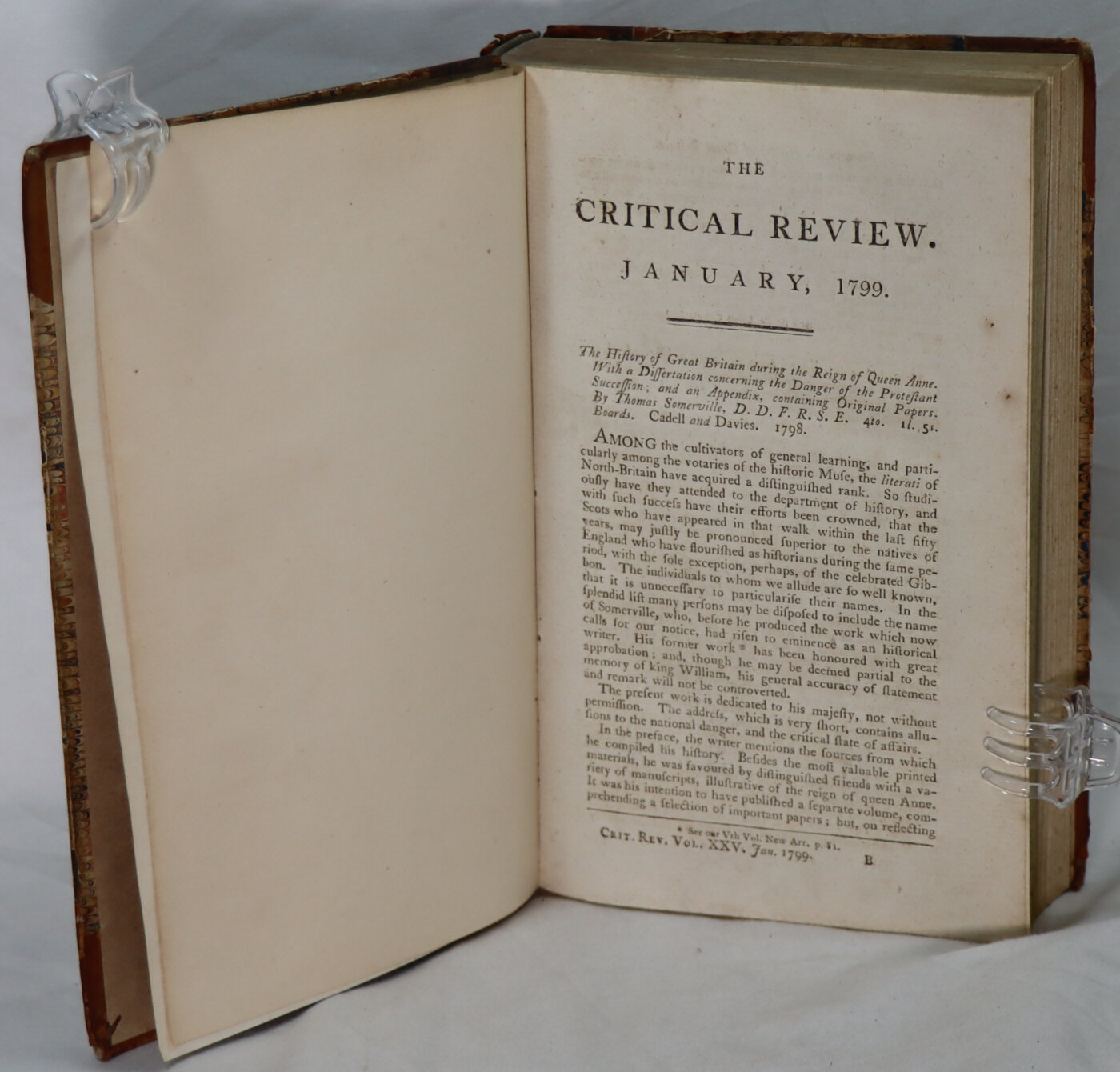 Tan calf spine with gilt banding and title. Tan marbled boards.