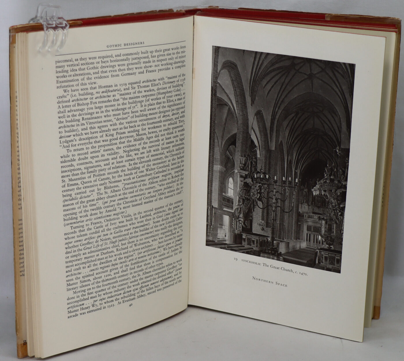 For conditions, please view our photographs. First edition, hardback. Printed pages: xii, 160.Hardcover. Preface, notes on a few of the 295 illustrations, acknowledgments, introduction, 9 chapters _ I.The Production of Gothic Art; II. The Design of Gothic Art; III. Gothic Designers; IV Gothic Geography; V. Cathedral Gothic; VI. Gothic in the British Isles; VII. Spatial Gothic; VIII. National Gothic; IX. The Gothic Age; Short Bibliography, abbreviations, Notes to the text, Index Binding tight, pages clean and unmarked, cover cloth