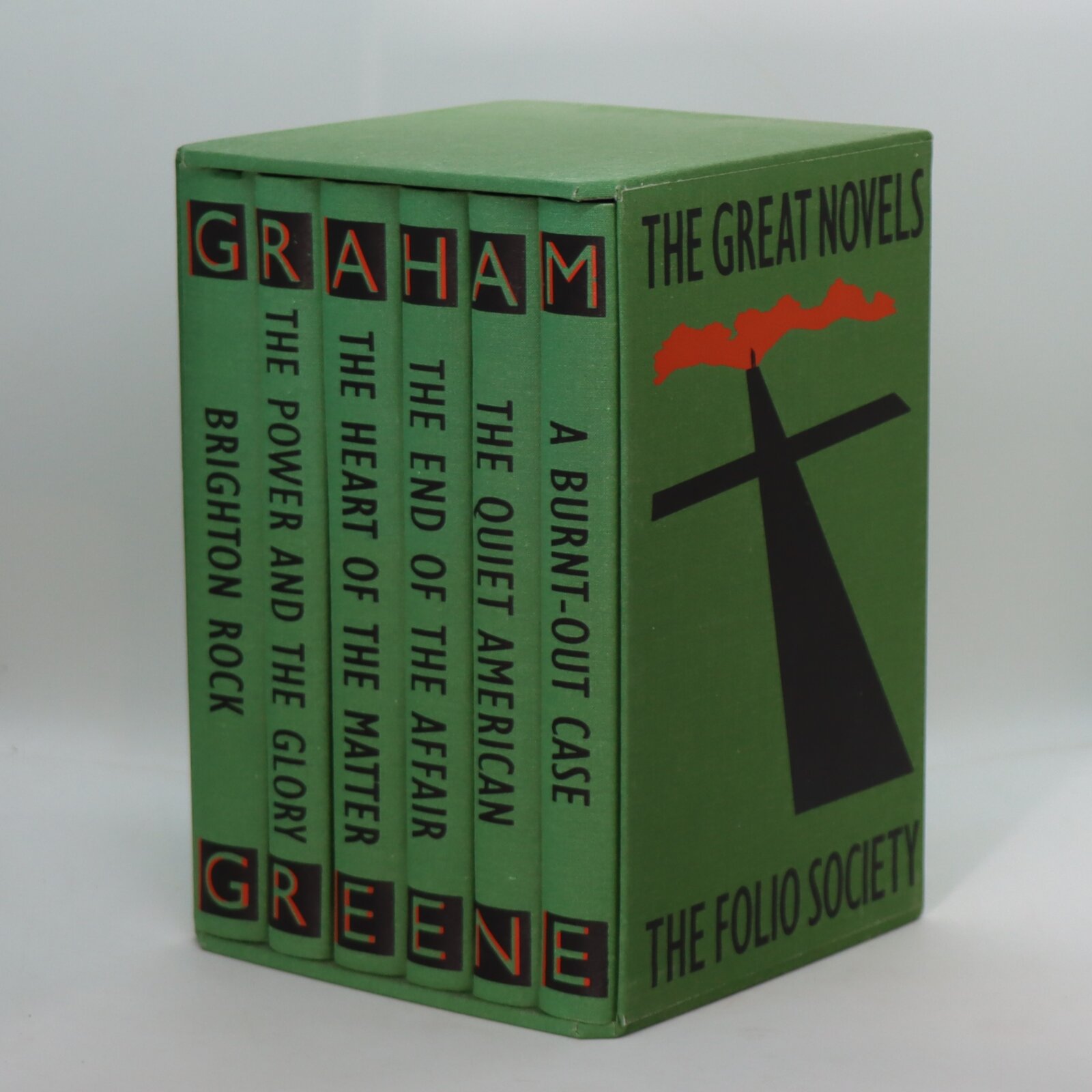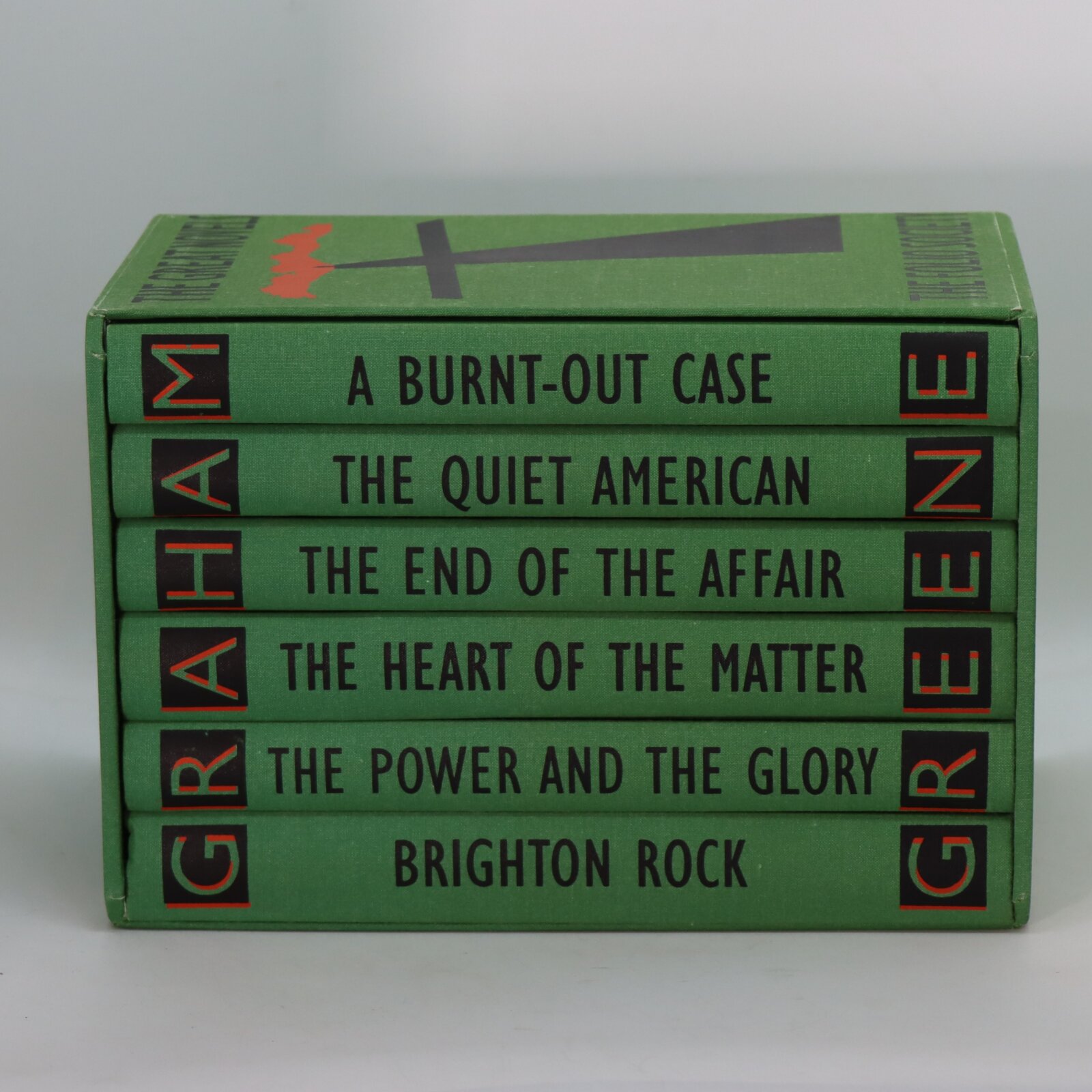 In a fitted box. Six volumes in a matching box. All in green cloth binding with red and black images and title on the front boards. Black titles on the spines.