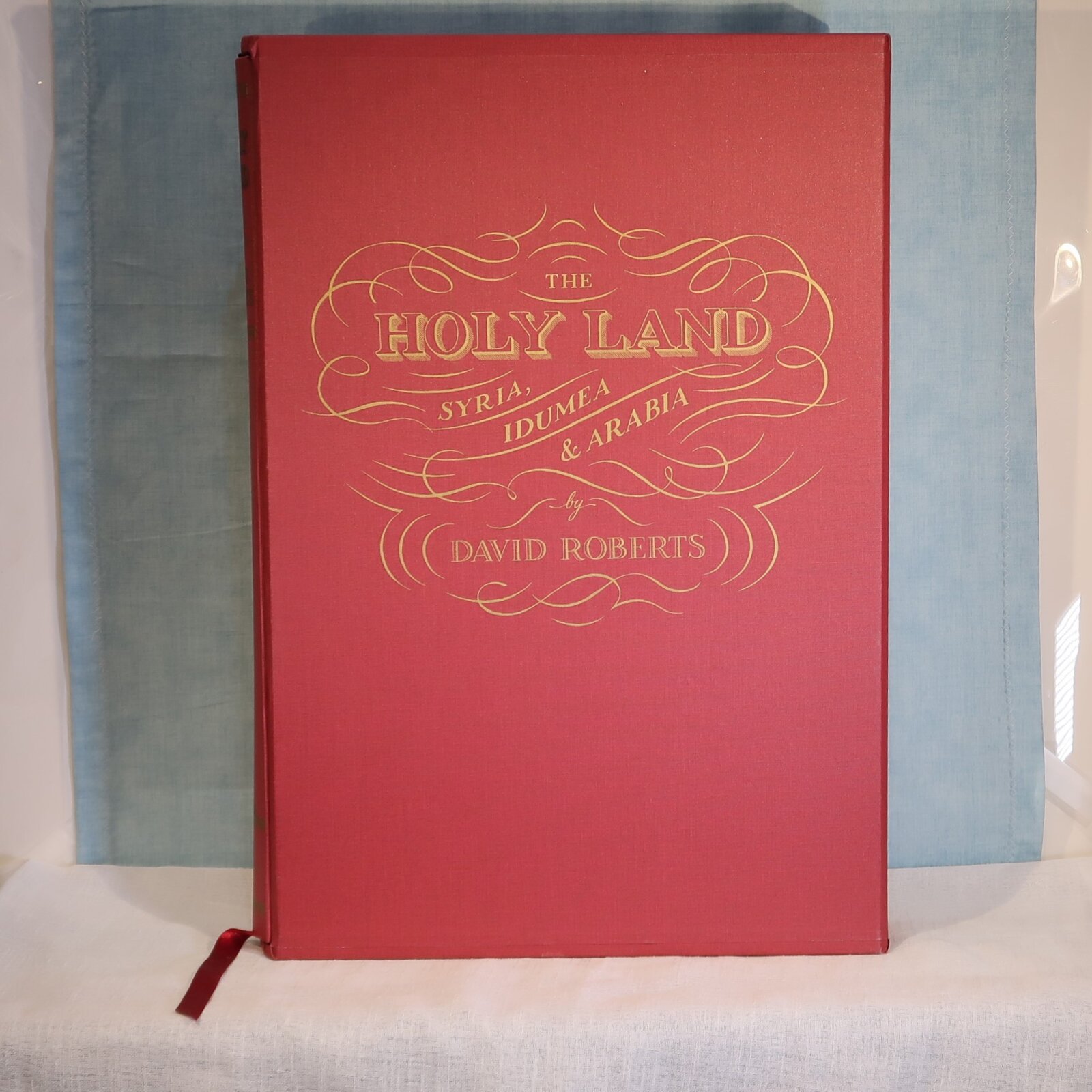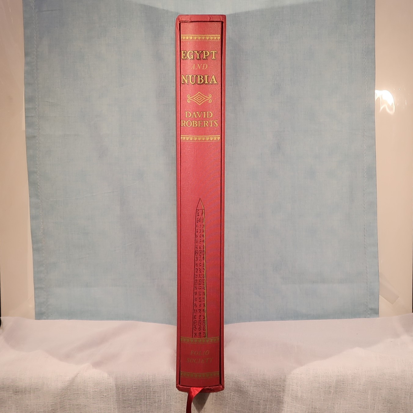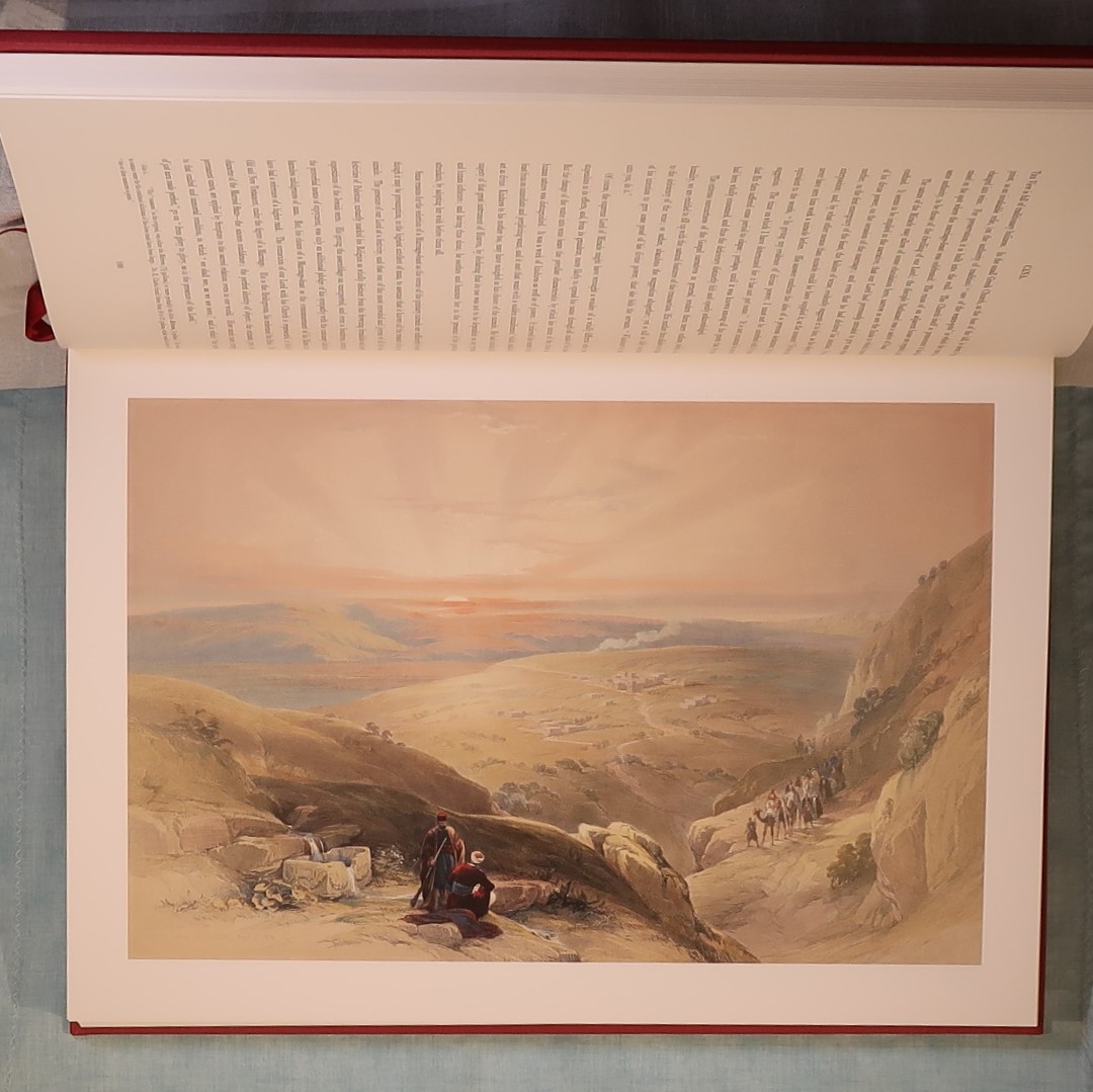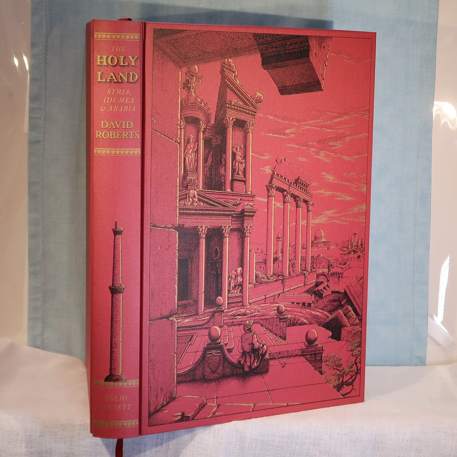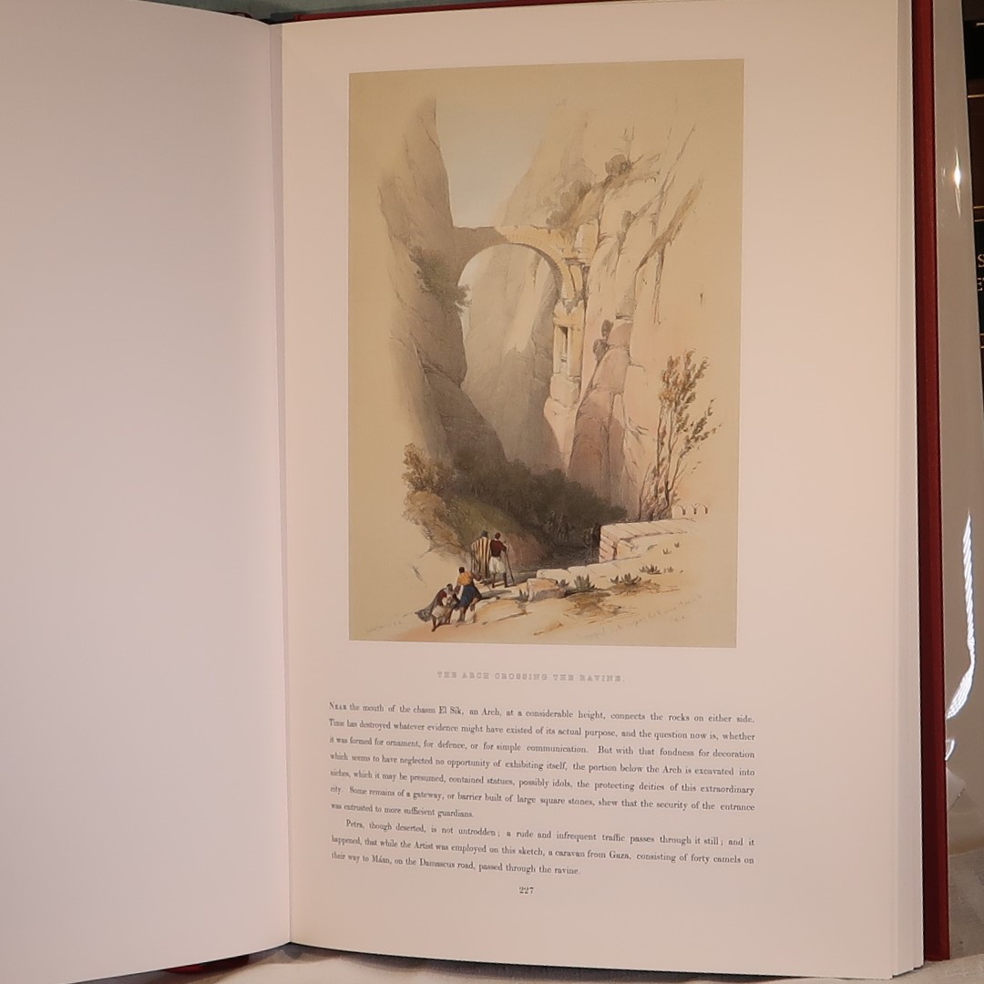 Facsimiles of the work of artist David Roberts. In a red cloth fitted box. Red Cloth bound with black and gold drawing on the front cover. Top edge of pages gilt. Number of 105 of 1000 for members of the Folio Society.