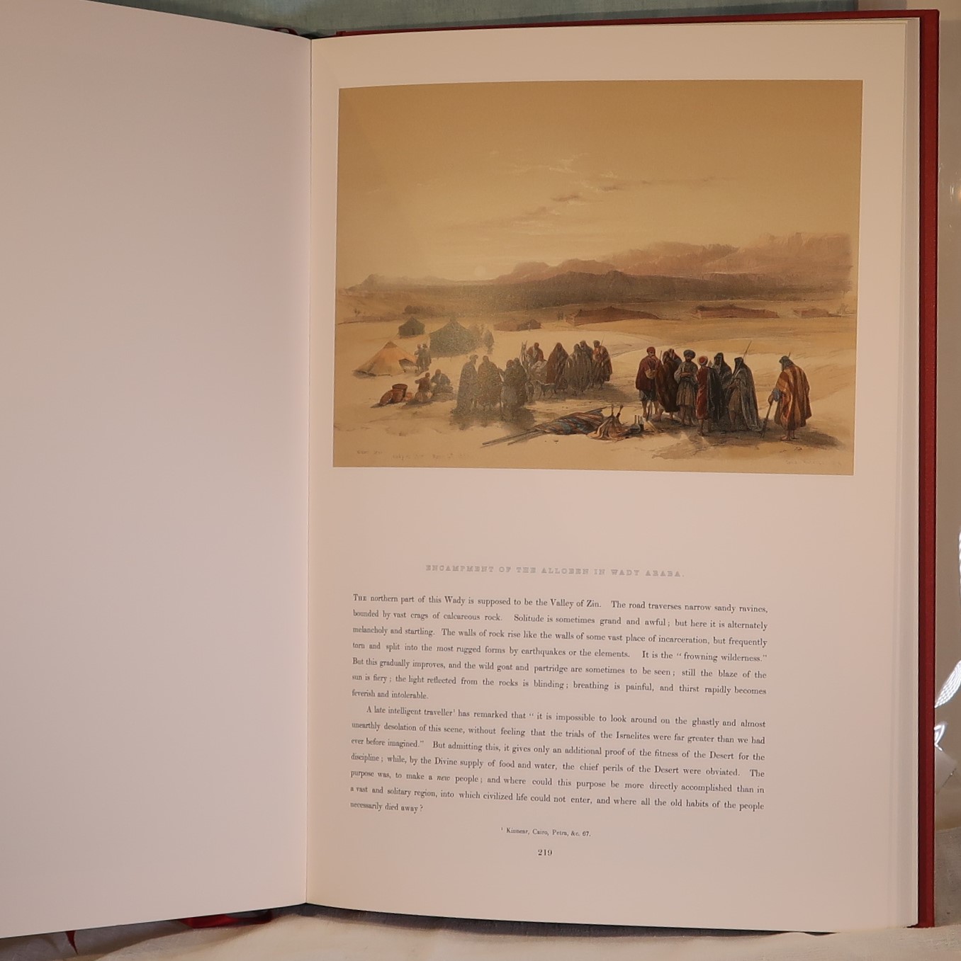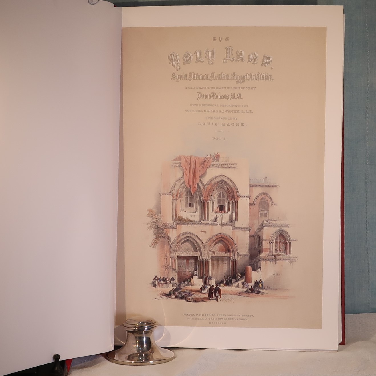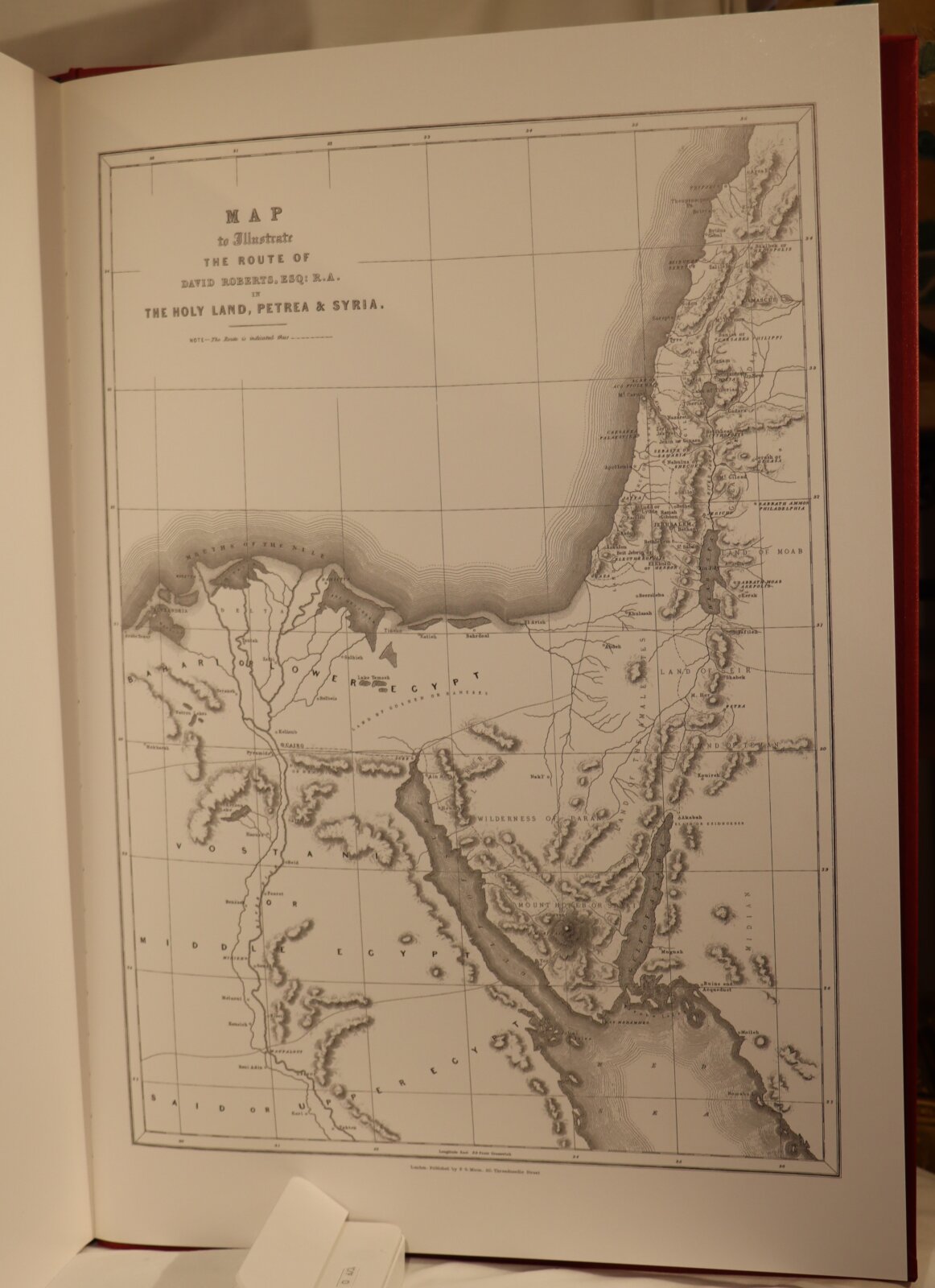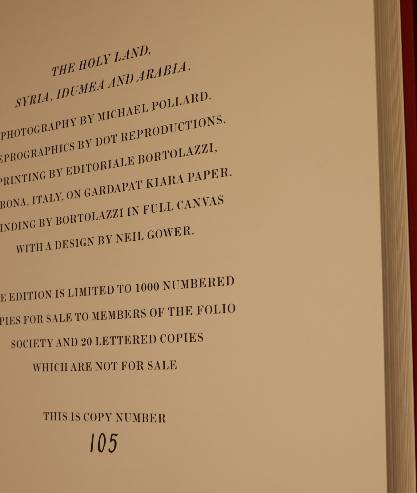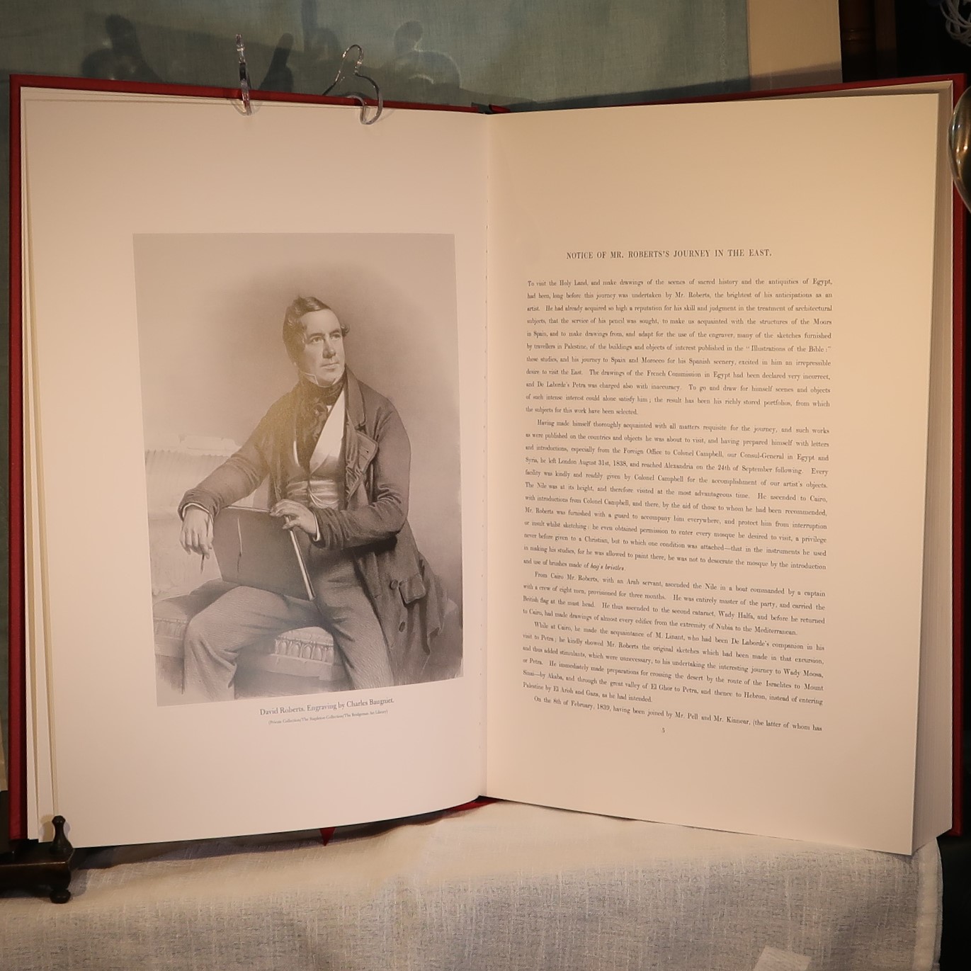 Facsimiles of the work of artist David Roberts. In a red cloth fitted box. Red Cloth bound with black and gold drawing on the front cover. Top edge of pages gilt. Number of 105 of 1000 for members of the Folio Society.