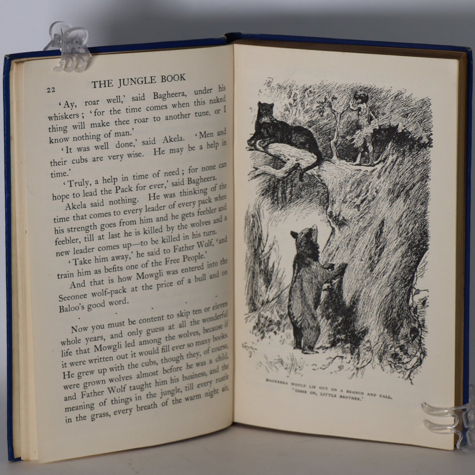 The Jungle Book (1894) is a collection of stories by the English author Rudyard Kipling. Most of the characters are animals such as Shere Khan the tiger and Baloo the bear, though a principal character is the boy or “man-cub” Mowgli, who is raised in the jungle by wolves. The stories are set in a forest in India; one place mentioned repeatedly is “Seonee” (Seoni), in the central state of Madhya Pradesh.