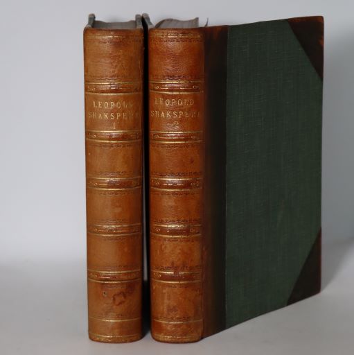 Green leather (faded to tan) spine with gilt banding and title. Green cloth boards. All edges marbled.