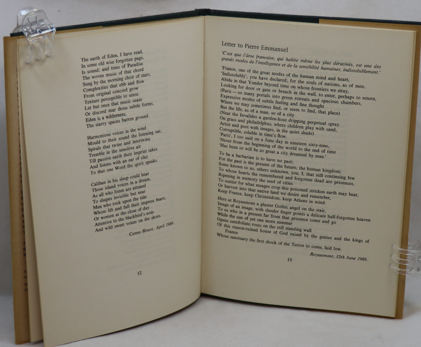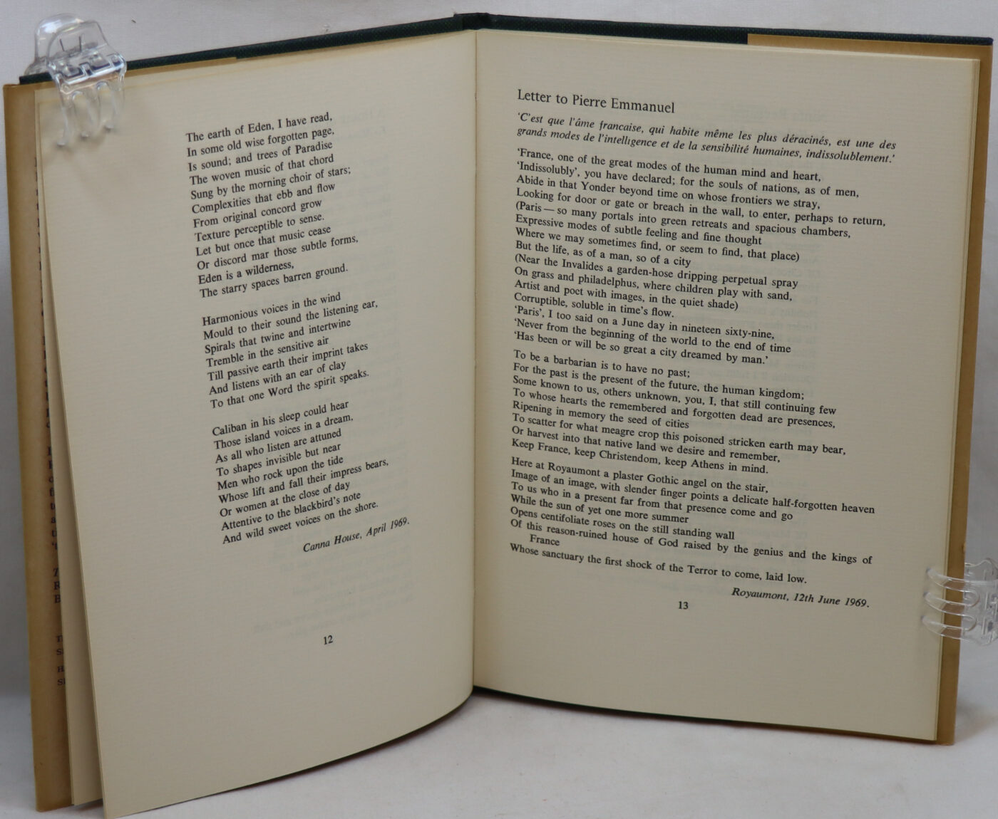 Kathleen Jessie Raine CBE (14 June 1908 – 6 July 2003) was an English poet, critic and scholar, writing in particular on William Blake, W. B. Yeats and Thomas Taylor. Known for her interest in various forms of spirituality, most prominently Platonism and Neoplatonism, she was a founding member of the Temenos Academy.Her first book of poetry, Stone And Flower (1943), was published by Tambimuttu, and illustrated by Barbara Hepworth. In 1946 the collection, Living in Time, was released, followed by The Pythoness in 1949. Her Collected Poems (2000) drew from eleven previous volumes of poetry. Her classics include Who Are We? There were many subsequent prose and poetry works, including her scholarly masterwork, the two-volume Blake and Tradition that was published in 1969 and derived from the A.W. Mellon Lectures that she delivered at the National Gallery of Art in Washington D.C in 1968. Raine was the first woman lecturer in the history of the series and her research demonstrated the antiquity, coherence and integrity of William Blake’s philosophy, refuting T S Eliot’s assertion to the contrary (Collected Essays, 1932). The story of her life is told in a three-volume autobiography notable for the author’s attempts to impose a structure on her memories that is quasi mythical, thus relating her own life to a larger pattern. This reflects patterns in her poetry, influenced by W. B. Yeats. The three books were originally published separately and later brought together in a single volume, entitled Autobiographies (in conscious imitation of Yeats), edited by Lucien Jenkins. Raine made translations of Honoré de Balzac’s Cousine Bette (Cousin Bette, 1948) and Illusions perdues (Lost Illusions, 1951). She was a frequent contributor to the quarterly journal Studies in Comparative Religion, which dealt with religious symbolism and the Traditionalist perspective. With Keith Critchlow, Brian Keeble and Philip Sherrard she co-founded, in 1981, Temenos, a periodical, and later, in 1990, the Temenos Academy of Integral Studies, a teaching academy that stressed a multi-stranded universalist philosophy, and in support of her generally Platonist and Neoplatonist views on poetry and culture. She studied Thomas Taylor and published a selection of his works. Raine was a research fellow at Girton College from 1955 to 1961. She taught at Harvard for at least one course about Myth and Literature offered to teachers and professors in the summer. She also spoke on Yeats and Blake and other topics at the Yeats School in Sligo, Ireland in the summer of 1974. A professor at Cambridge and the author of a number of scholarly books, she was an expert on Coleridge, Blake, and Yeats. The contemporary composer David Matthews has written a song-cycle, The Golden Kingdom, on some of Raine’s poems. Richard Rodney Bennett’s Spells (1974–75), a work for soprano, chorus, and large orchestra, is set to texts by Raine.