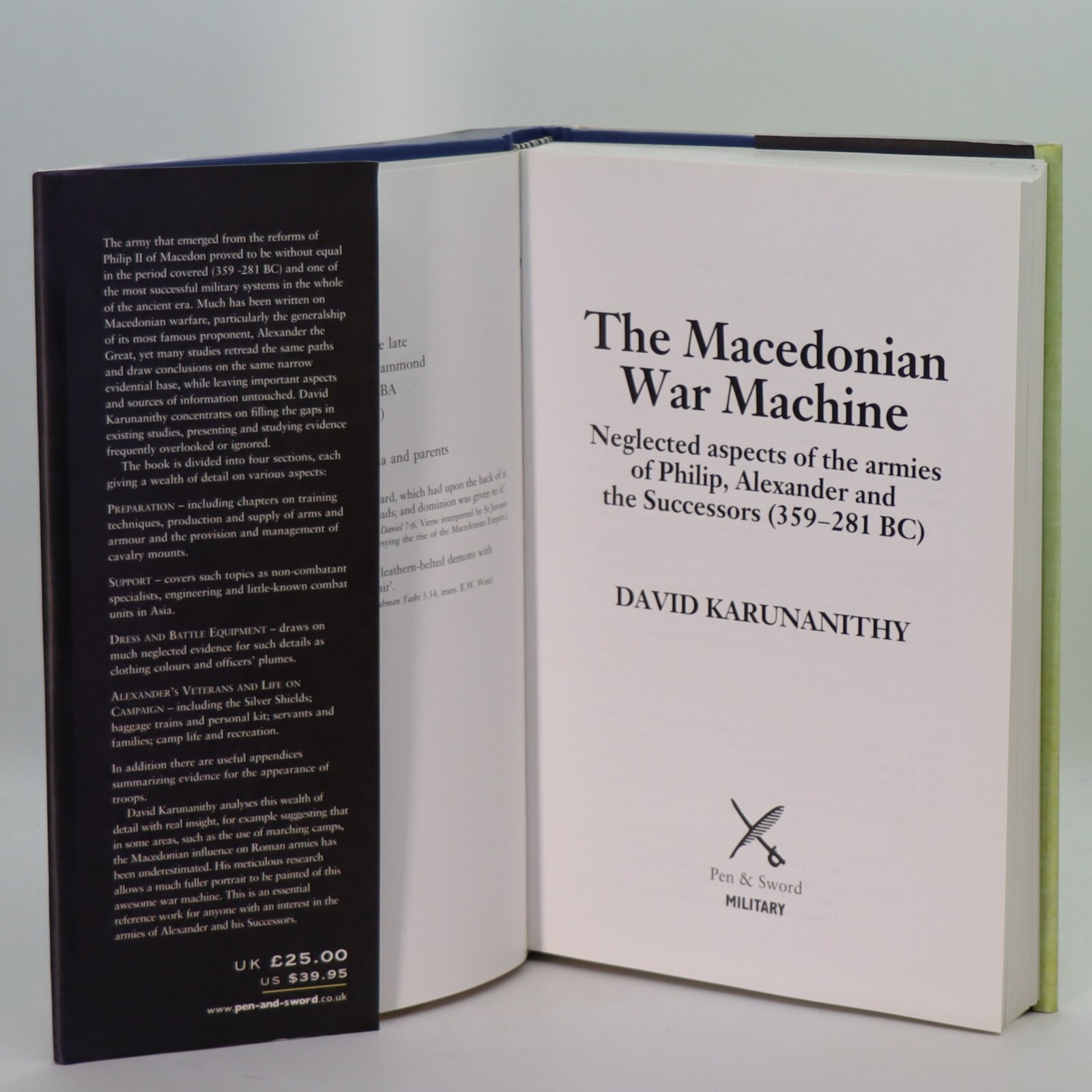 NOTE: The army that emerged from the reforms of Philip II of Macedon proved to be without equal in the period covered and one of the most successful in the whole of the ancient period. Much has been written on aspects of Macedonian warfare, particularly the generalship of it’s most famous proponent, Alexander the Great, yet many studies retread the same paths and draw conclusion on the same narrow evidential base, while leaving important aspects and sources of information untouched. David Karunanithy concentrates on filling the gaps in existing studies, presenting and studying evidence frequently overlooked or ignored. The book is divided into four sections, each presenting a wealth of detail on various aspects: Preparation (including chapters on training techniques, various aspects of arms and armour production and supply and the provision and management of cavalry mounts); Support (eg non-combatant specialists, bridge building, field engineering, construction of field camps and little-known combat units in Asia); Dress and Battle Equipment (drawing on much neglected evidence and including such details as officers’ plumes, wreaths and finger rings); Alexander’s Veterans and Life on Campaign (the Silver Shields; baggage trains and personal kit, servants and families, camp life and recreation.). In addition there are useful appendices summarising evidence for the appearance of troops. Karunanithy analyses this wealth of detail with real insight, for example suggesting that in some areas, such as the use of marching camps, the Macedonian influence on Roman armies has been underestimated. His meticulous research allows a much fuller portrait to be painted of this awesome war machine. This is an absolute must-have for anyone with an interest in the armies of Alexander and his Successors.