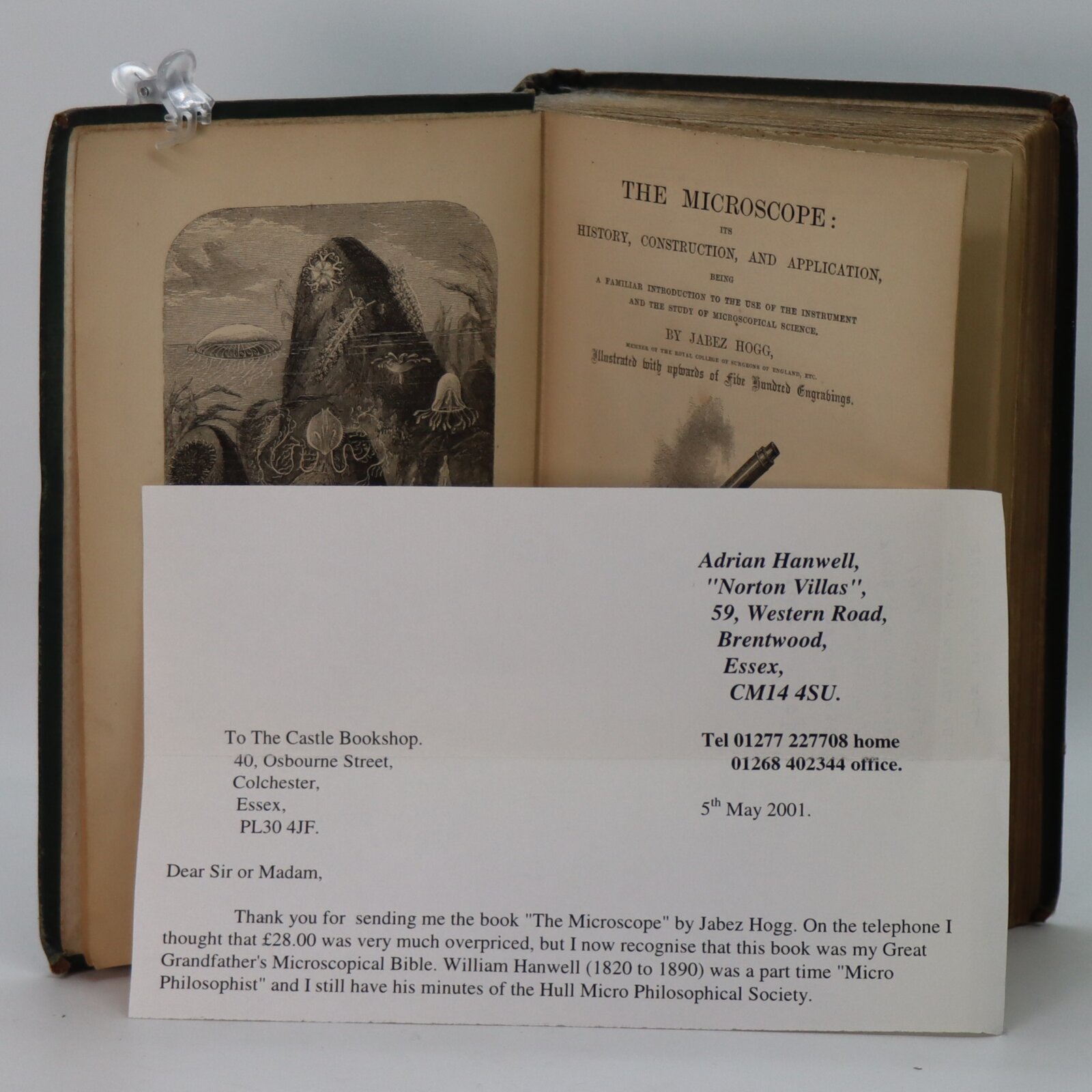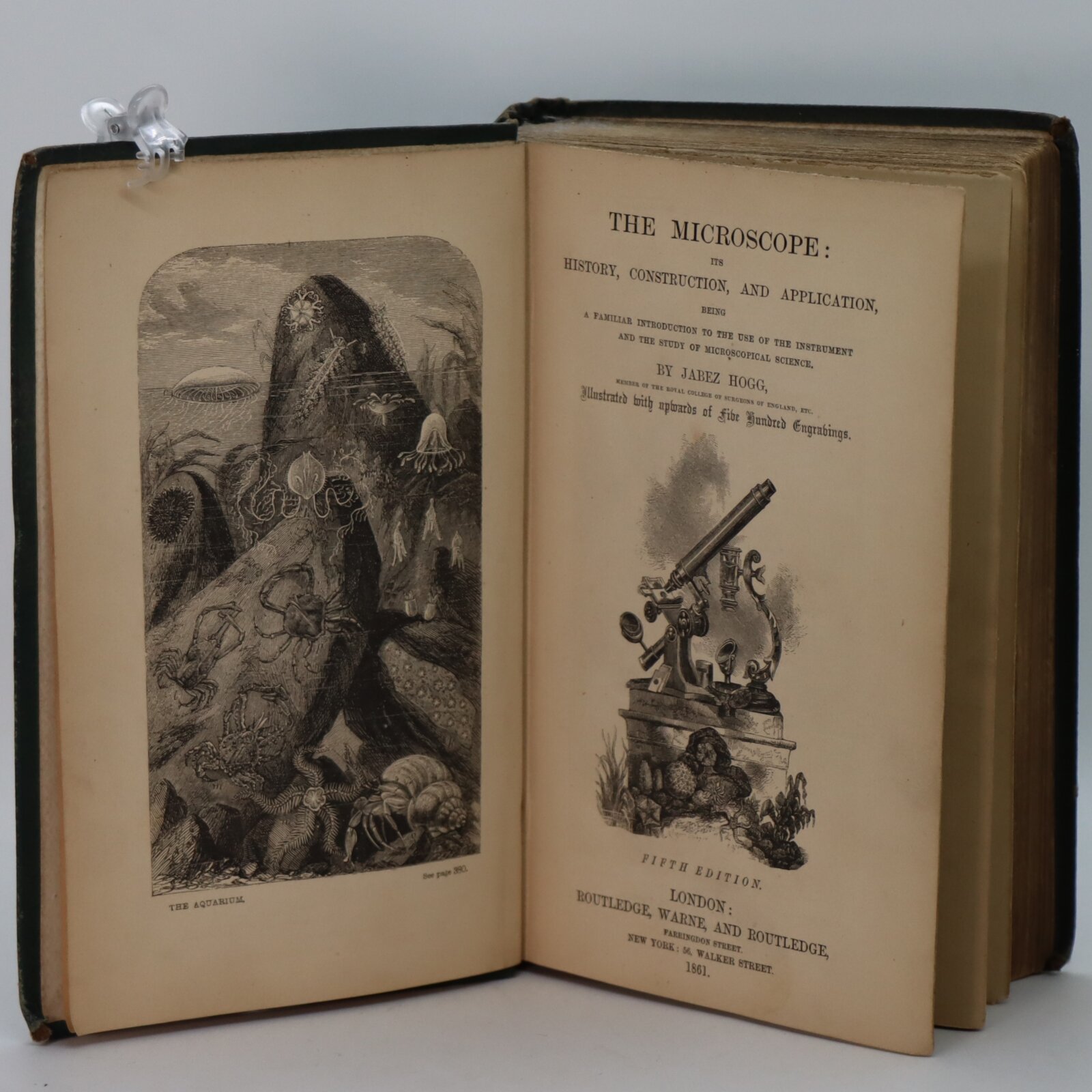 Navy cloth binding with gilt title on the spine and gilt microscope on the front board.