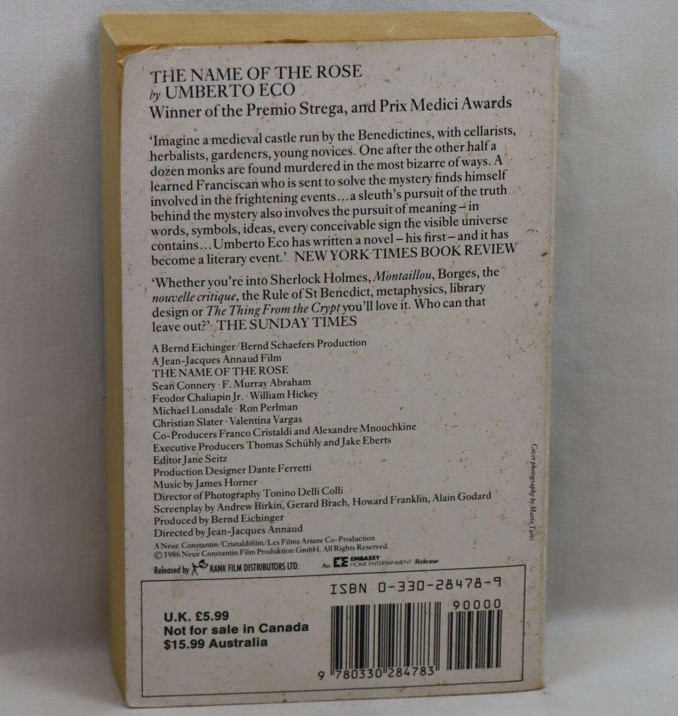 The Name of the Rose is the 1980 debut novel by Italian author Umberto Eco. It is a historical murder mystery set in an Italian monastery in 1327, and an intellectual mystery combining semiotics in fiction, biblical analysis, medieval studies, and literary theory. It was translated into English by William Weaver in 1983.