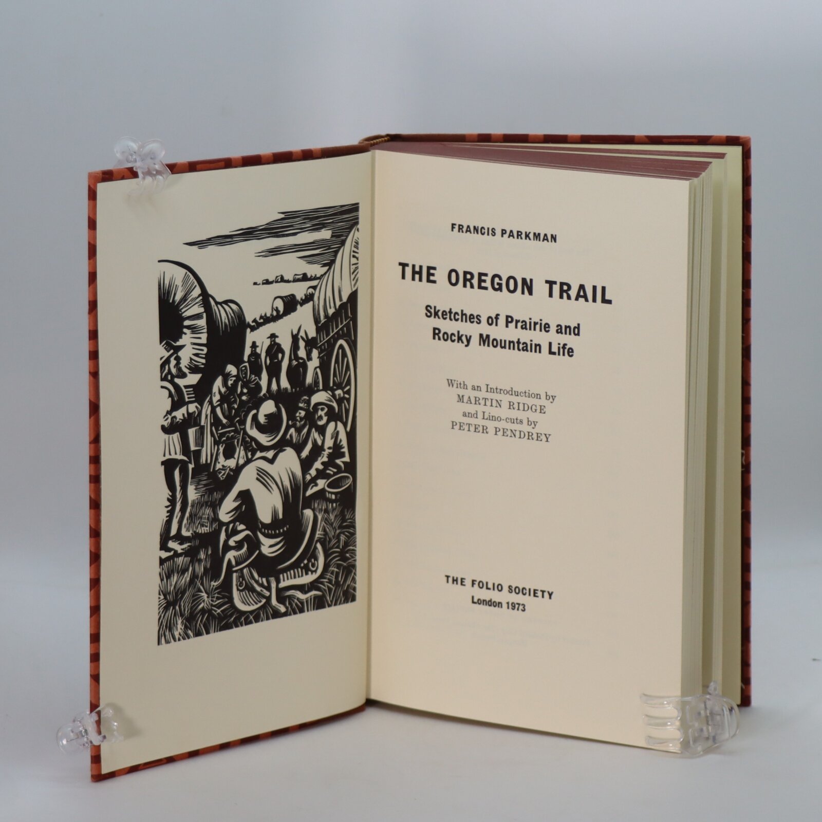NO FITTED BOX. Tan cloth spine with gilt title and design. Orange and red geometric design on both boards.