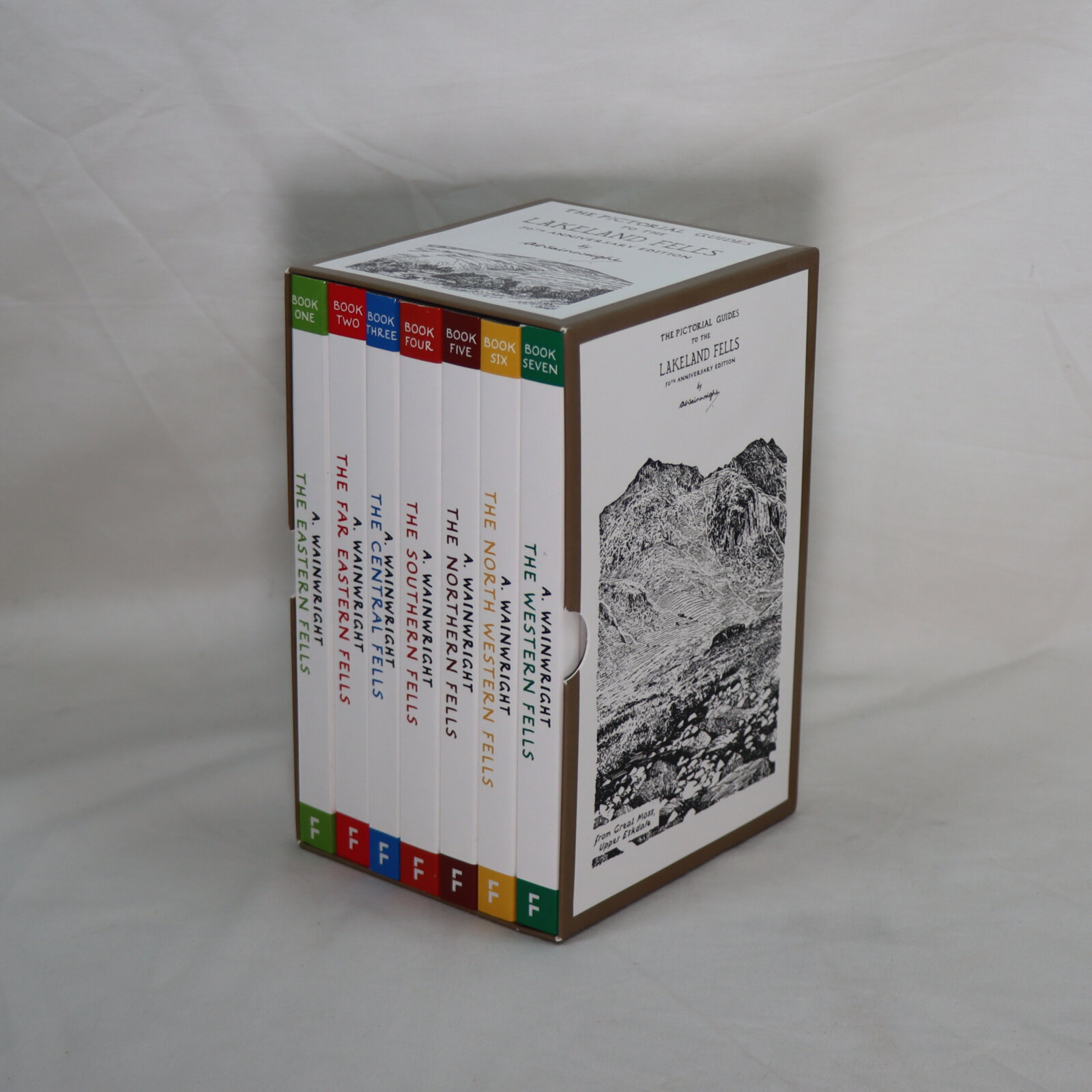 This boxed set contains all seven of the Pictorial Guides to the Lakeland Fells by the fell walking legend, A. Wainwright. For this Anniversary edition the pages were freshly reproduced from the original artwork and printed and bound to match the original books as closely as possible. Maps and text are as Wainwright wrote them. Since the guides were compiled half a century ago, they have been treasured by generations of walkers, and television programmes in the year of the centenary of Wainwright’s birth introduced them to new enthusiasts. There were no guides like these before Wainwright devised them, and in the years since they were first published, they have never been matched. This boxed set of all seven books is the perfect gift for walkers and lovers of the Lakeland fells.