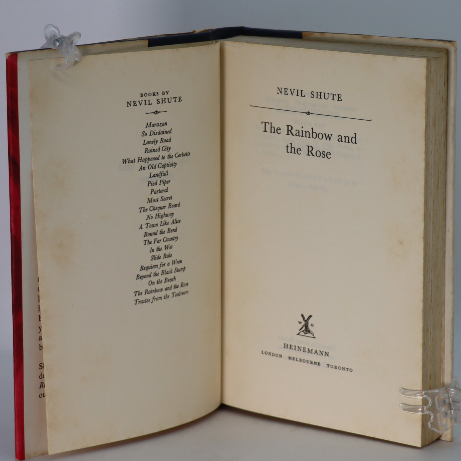 The Rainbow and the Rose is a novel by Nevil Shute. It was first published in England in 1958 by William Heinemann. The story concerns the life of Canadian Johnnie Pascoe, a retired commercial and military pilot, who has crashed while attempting a medevac flight in difficult weather conditions into a small airstrip a mountainous region of Tasmania. Unconscious and suffering from a dangerous head injury, he lies in the house of the child he had been sent to help, which is inaccessible by road and in contact with the outside world only by radio. Hearing of his plight, Ronnie Clarke — an airline pilot and student of Pascoe decades earlier — offers to try and land a young doctor. After two failed flights in one of Pascoe’s own Taylorcraft Auster aircraft from the small flight school Pascoe set up after retirement, Clarke rests overnight at Pascoe’s house, meets Pascoe’s two daughters, and narrates the life of his former mentor through three dream episodes. In the first episode, Pascoe is a young fighter pilot in the Royal Flying Corps during The Great War and marries an up-and-coming actress. At war’s