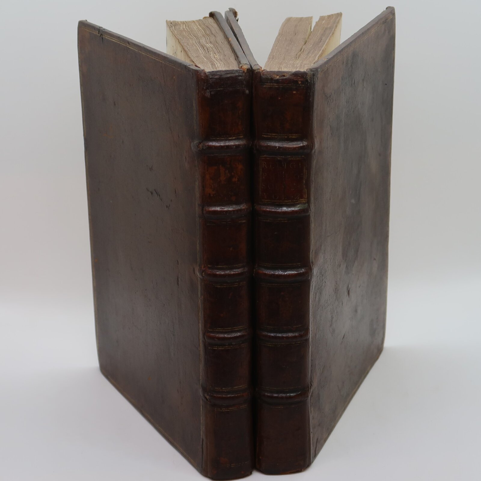 Brown leather binding with raised banding and gilt title on the spine. Dimensions are for one volume.