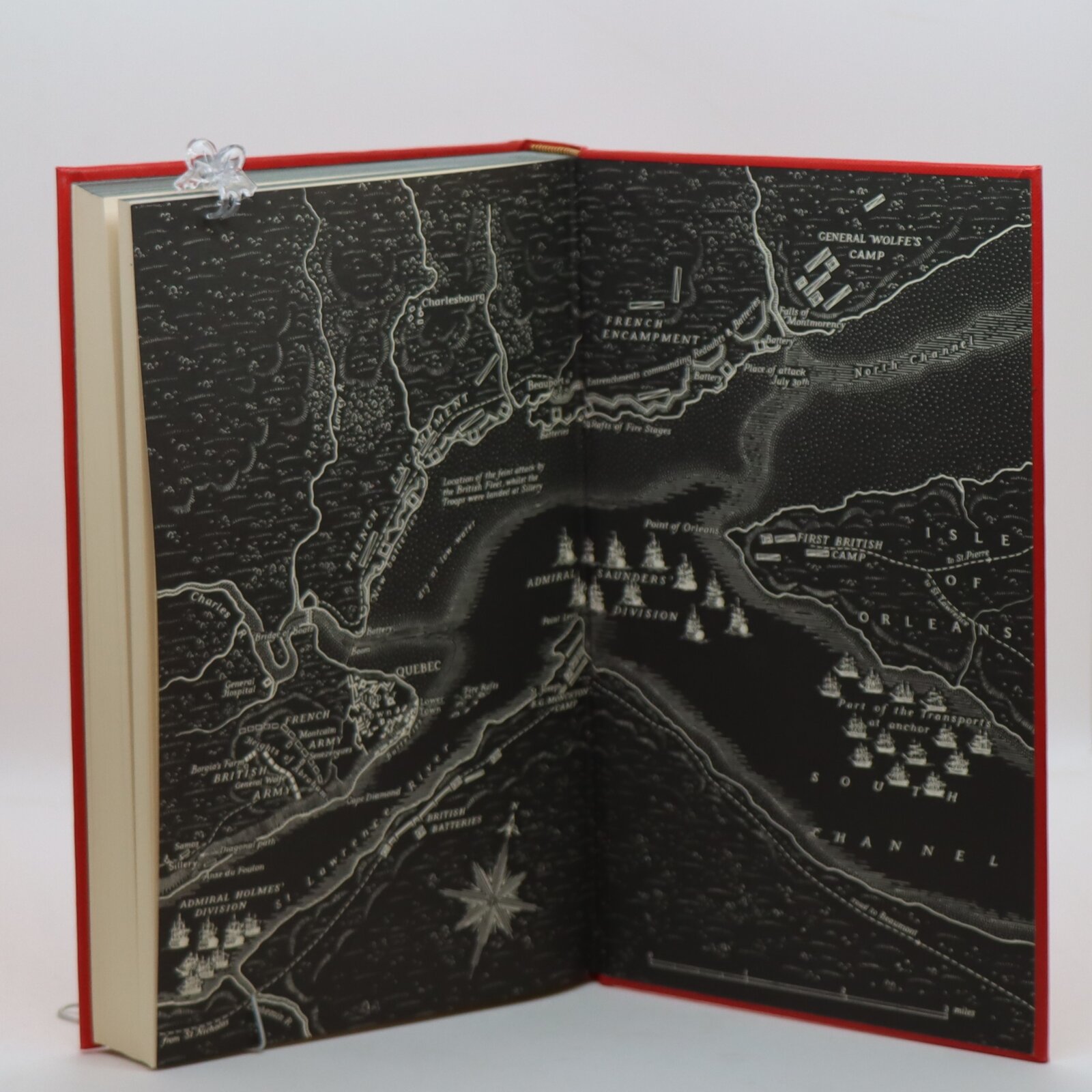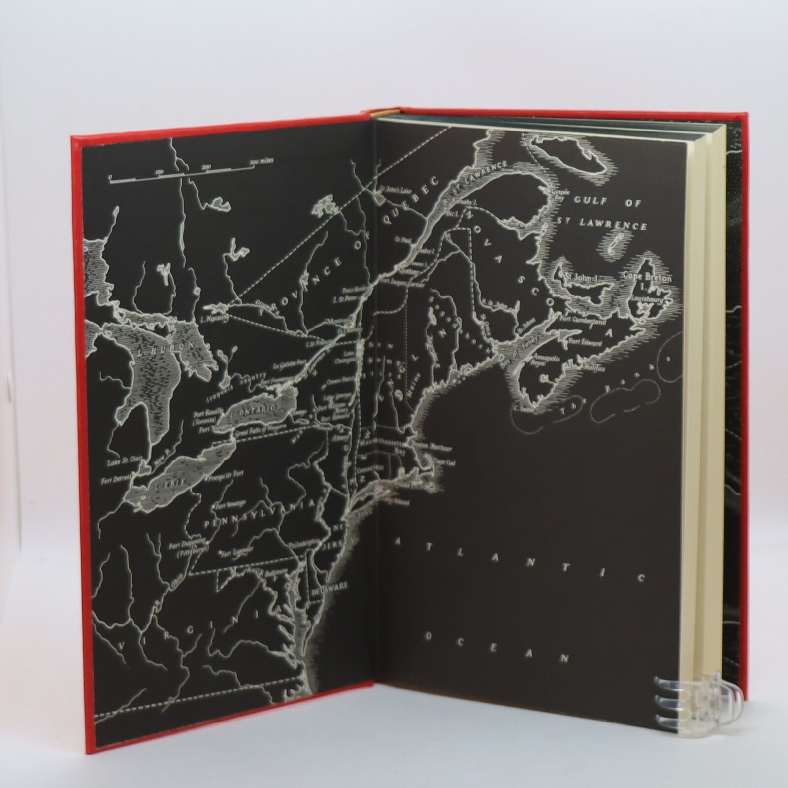 In a fitted box. Red cloth binding with elaborate gilt design on the front board. Black title plate with gilt lettering and squared emblems on the spine.