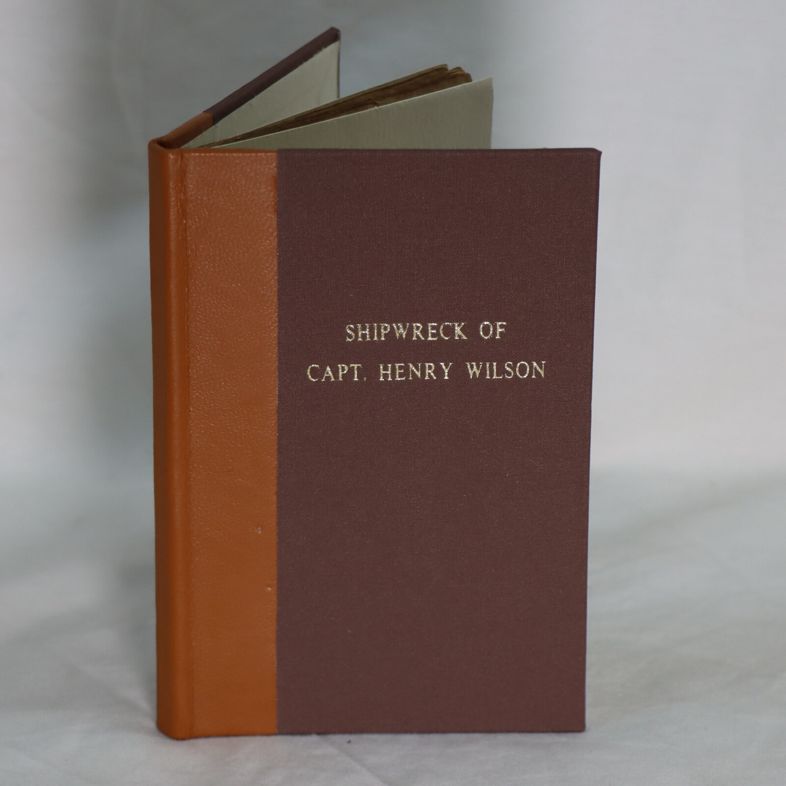 This chapbook has been beautifully rebound by Mr. Brian Cole. Rendered down it tells the story of Henry Wilson (1740–1810) was an English naval captain of the British East India Company, from Rotherhithe. He was in command of the British East India Company packet ship Antelope, when it shipwrecked off Ulong Island, near Koror Island in Palau in 1783, and the East Indiaman Warley at the Battle of Pulo Aura.