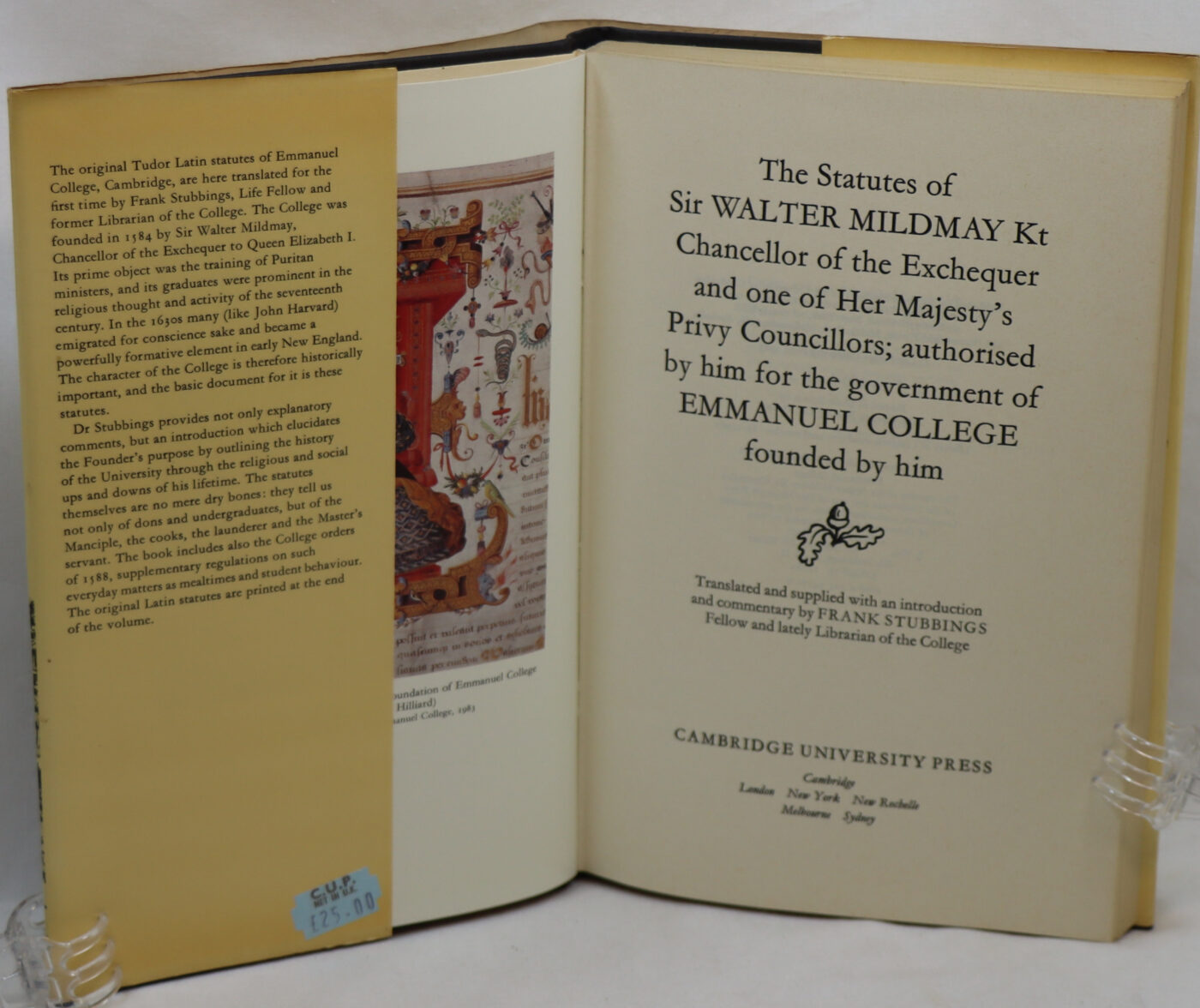 The original Tudor Latin statutes of Emmanuel College, Cambridge, are here translated for the first time by Frank Stubbings, Life Fellow and former Librarian of the College. The College was founded in 1584 by Sir Walter Mildmay, Chancellor of the Exchequer to Queen Elizabeth I. Its prime object was the training of Puritan ministers, and its graduates were prominent in the religious thought and activity of the seventeenth century. In the 1630s many (like John Harvard) emigrated for conscience sake and became a powerfully formative element in early New England. The character of the College is therefore historically important, and the basic document for it is these statutes. Dr Stubbings provides not only explanatory comments, but an introduction which elucidates the Founder’s purpose by outlining the history of the University through the religious and social ups and downs of his lifetime. The statutes themselves are no mere dry bones: they tell us not only of dons and undergraduates, but of the Manciple, the cooks, the launderer and the Master’s servant. The book also includes the College orders of 1588, supplementary regulations on such everyday matters as mealtimes and student behaviour. The original Latin statutes are printed at the end of the volume.