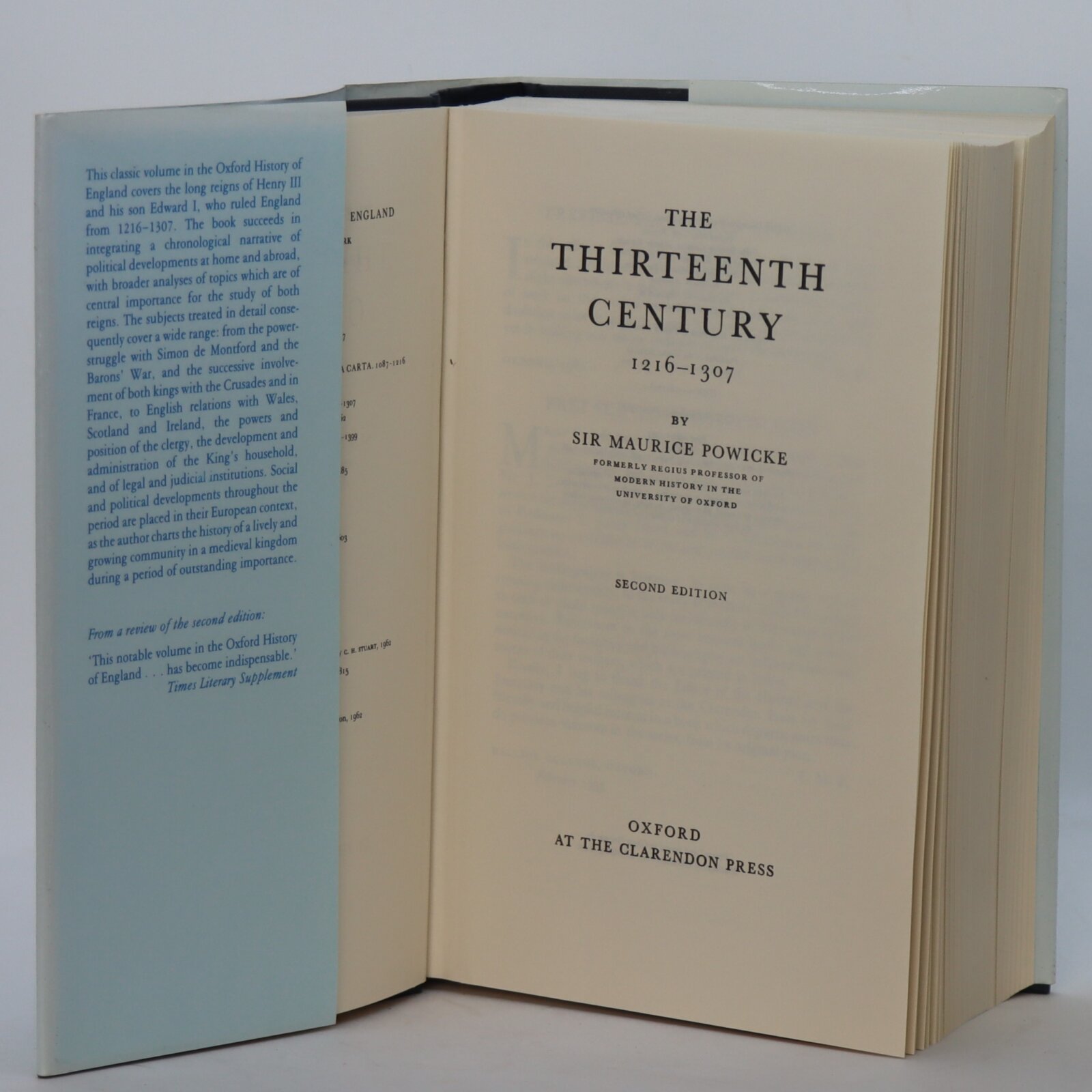 hardcover in dust jacket: 829 pages including index; genealogical table and three black and white maps included. Contents: List of maps. Part one: The minority of Henry 111. Part two. The duties of kingship. Part three. Foreign relations 1216 – 59. Part four. The common enterprise, 1258 – 62. Part five. The Barons War and the Legates peace. Part six. Edward 1 and his time. Part seven. The Duke of Aquitaine. Part eight. The period of the statutes, 1274-90. Part nine. Wales. Part ten. The clergy under two rules of law. Part eleven. The community of the realm and taxation. Part 12. Ireland and Scotland, 1217- 97. Part 13. The Crown and the merchants. Part 14. The years of emergency. Bibliography. Index.