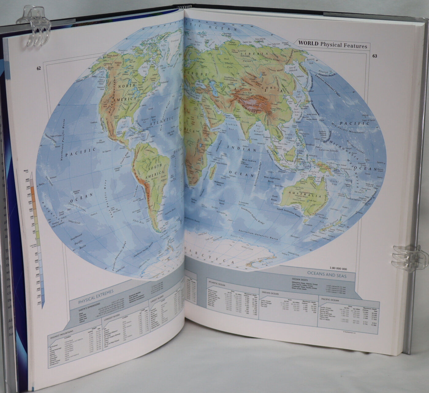 8 pages have been added to the reference map section for this edition and all maps have been completely updated, providing accurate, accessible and attractive coverage of the whole world. The atlas includes unique satellite images of the continents and comprehensive statistics relating to the world’s physical features and states and territories.