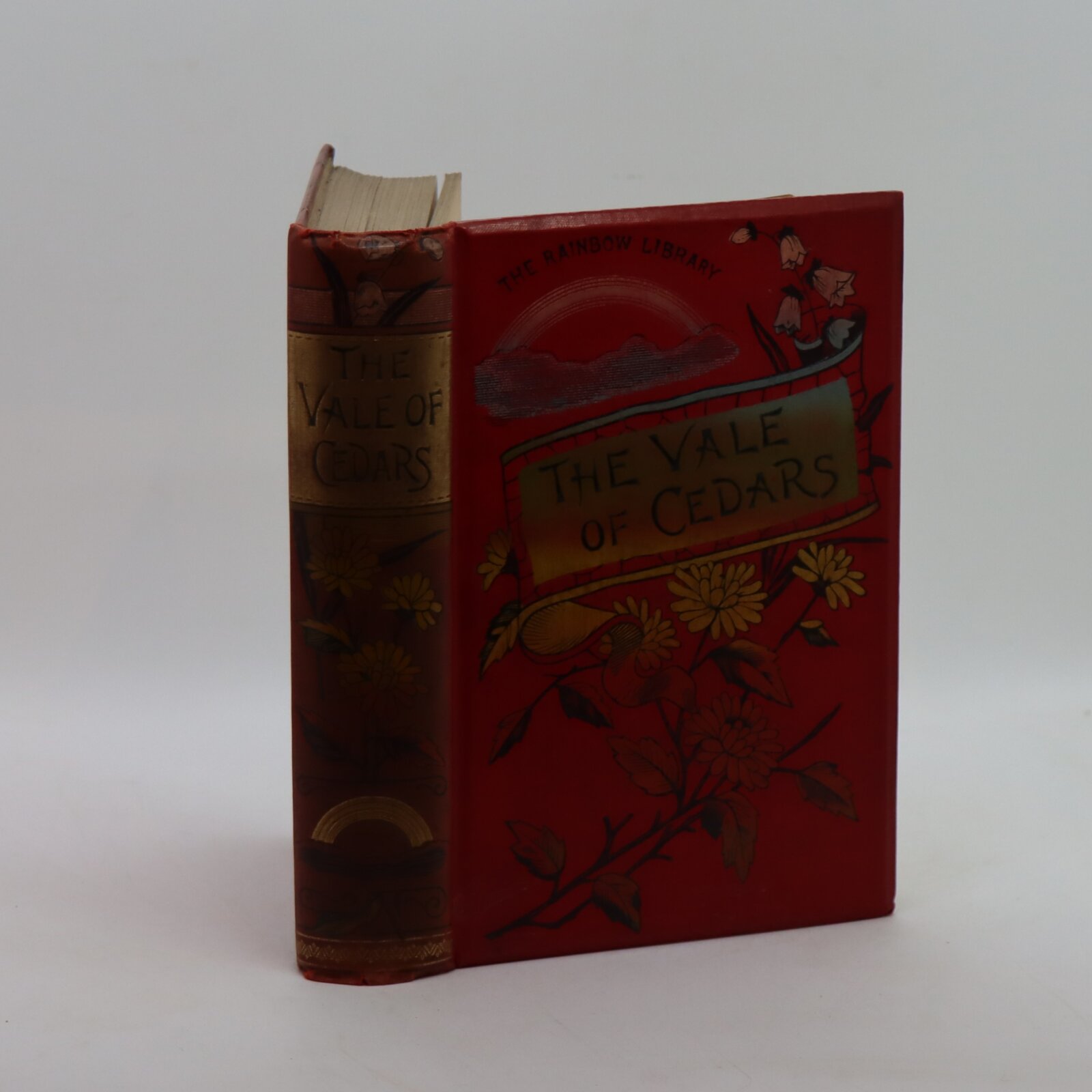 Red cloth binding, floral picture and title on front board and spine. Black lettering.