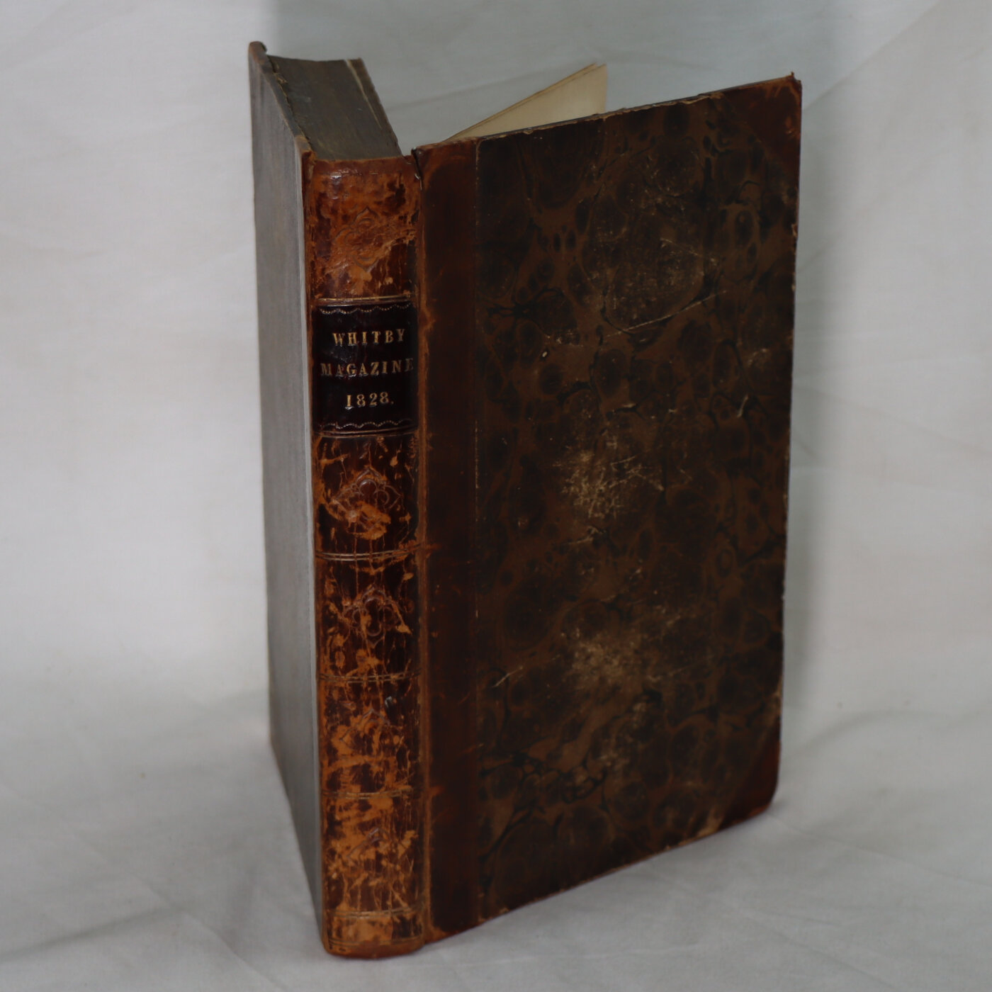 Brown calf spine with maroon title plate and gilt title. Brown marbled boards.