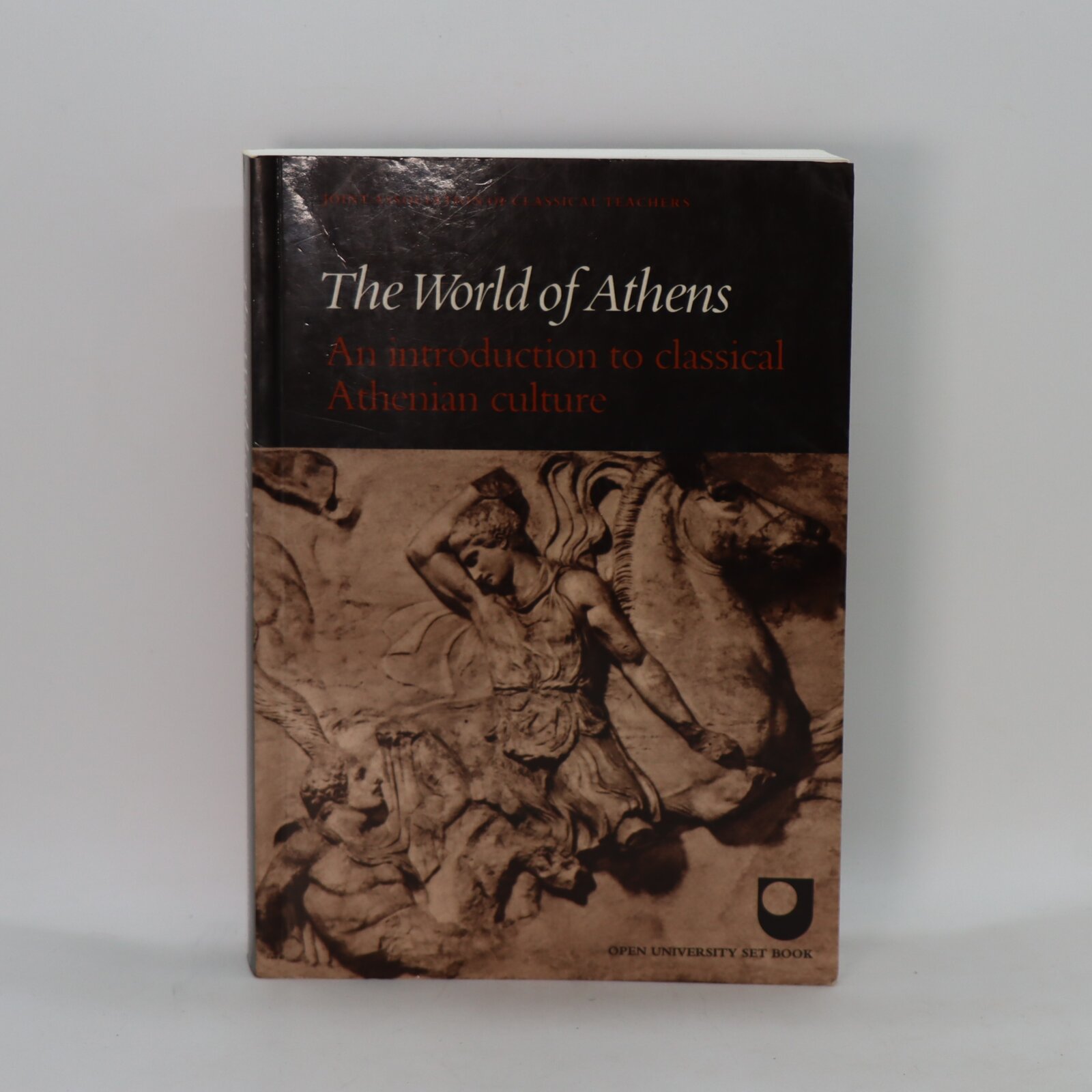 Softback. Black cover with picture of Athen’s Marble frieze on the front board.