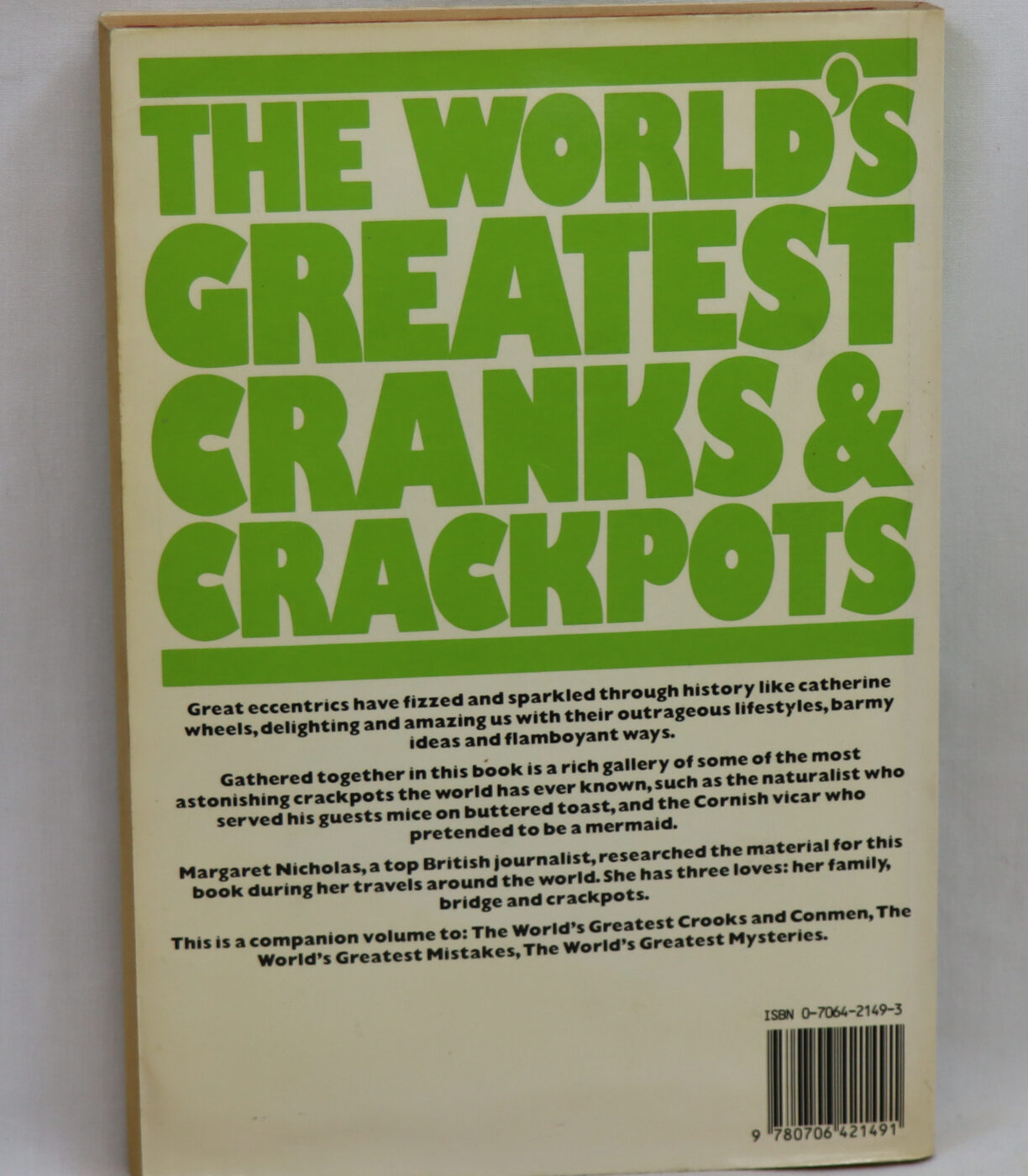 Paperback. White cover with green title.
