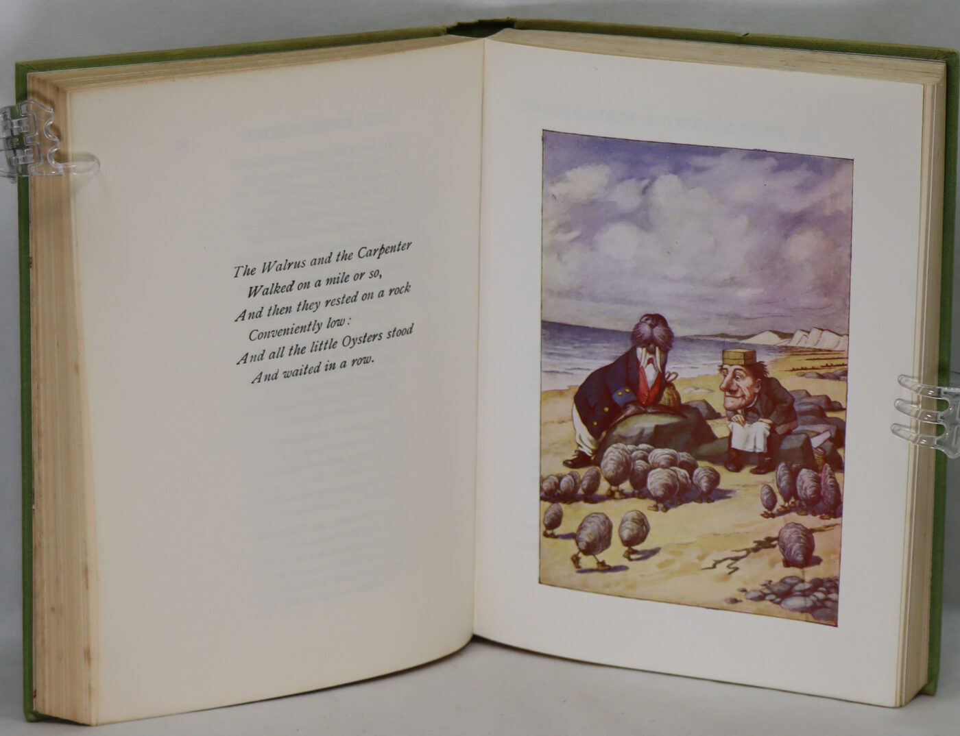 The book contains several verse passages, including “Jabberwocky”, “The Walrus and the Carpenter” and the White Knight’s ballad, “A-sitting On a Gate”. Like Alice’s Adventures in Wonderland, the book introduces phrases that have become common currency, including “jam to-morrow and jam yesterday – but never jam to-day”, “sometimes I’ve believed as many as six impossible things before breakfast”, “un-birthday presents”, “portmanteau words” and “as large as life and twice as natural”.