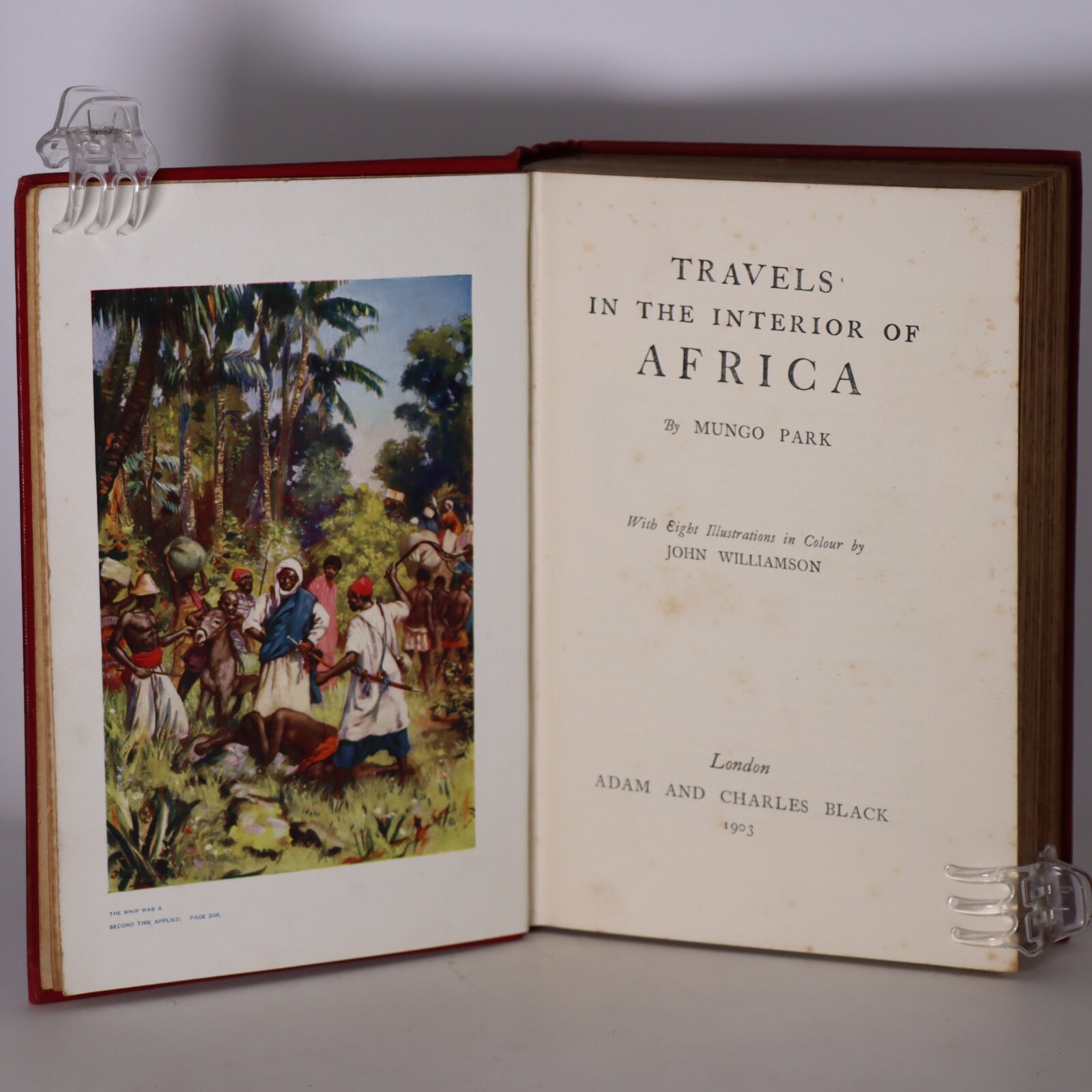 Red cloth binding with gilt title and African images on the spine and front board.
