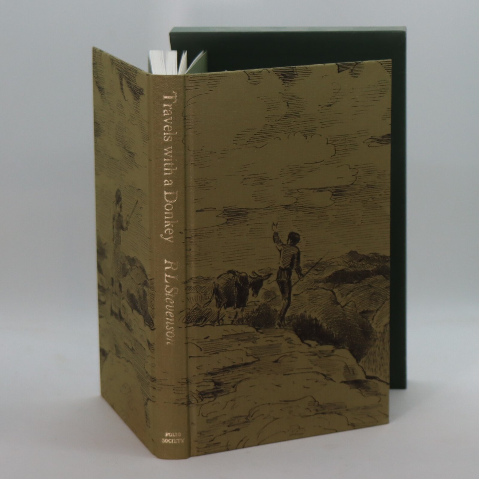 In a fitted box. Khaki cloth binding with etching of a man and a donkey on the front board. Gilt title on the spine.
