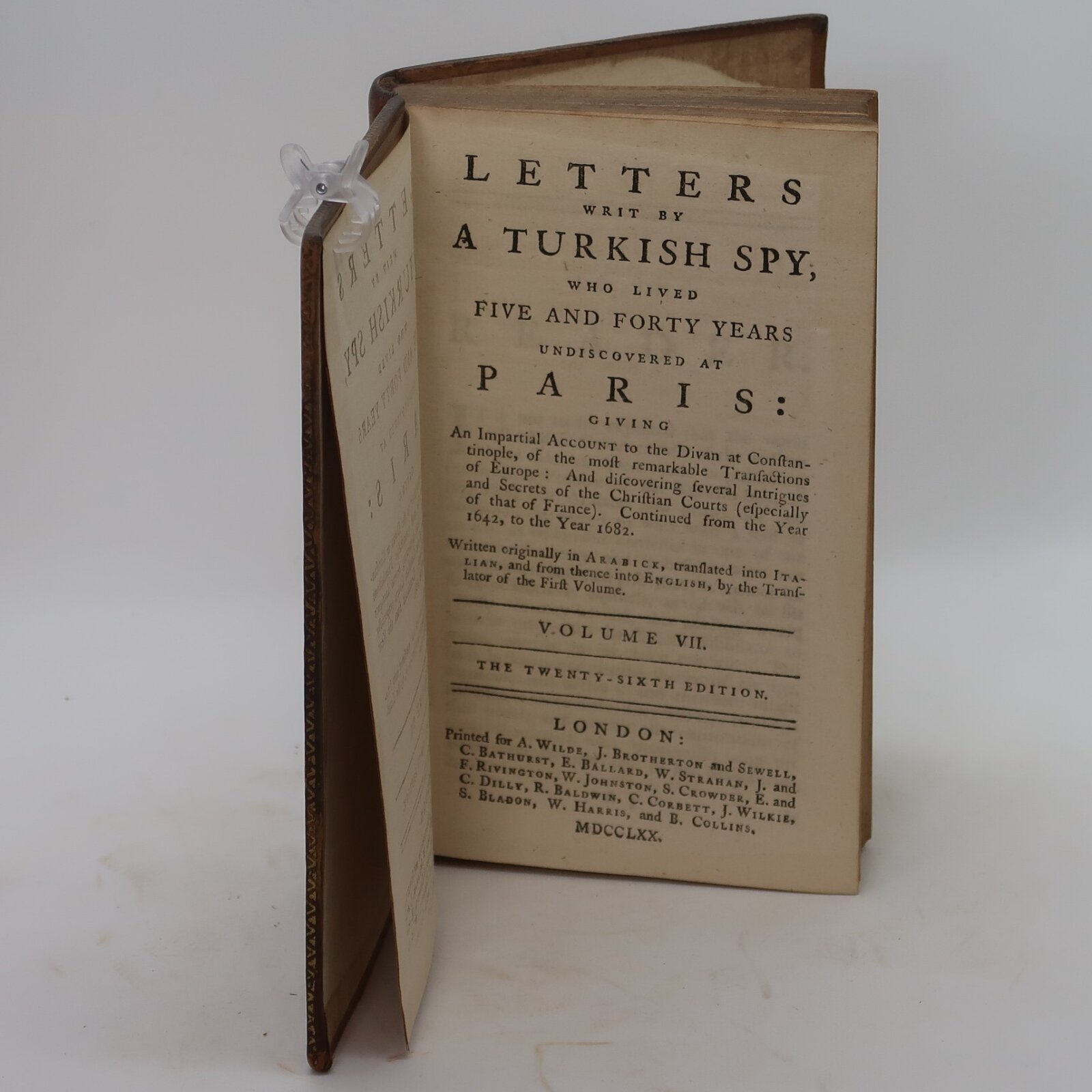 The work was popular throughout the 18th century and went through fifteen complete editions by 1801. Daniel Defoe was attracted to the deist rationalist sympathies of the purported spy; his Continuation of Turkish Letters Writ by a Turkish Spy in Paris (1718) extended the narrator’s account from 1687 to 1693.