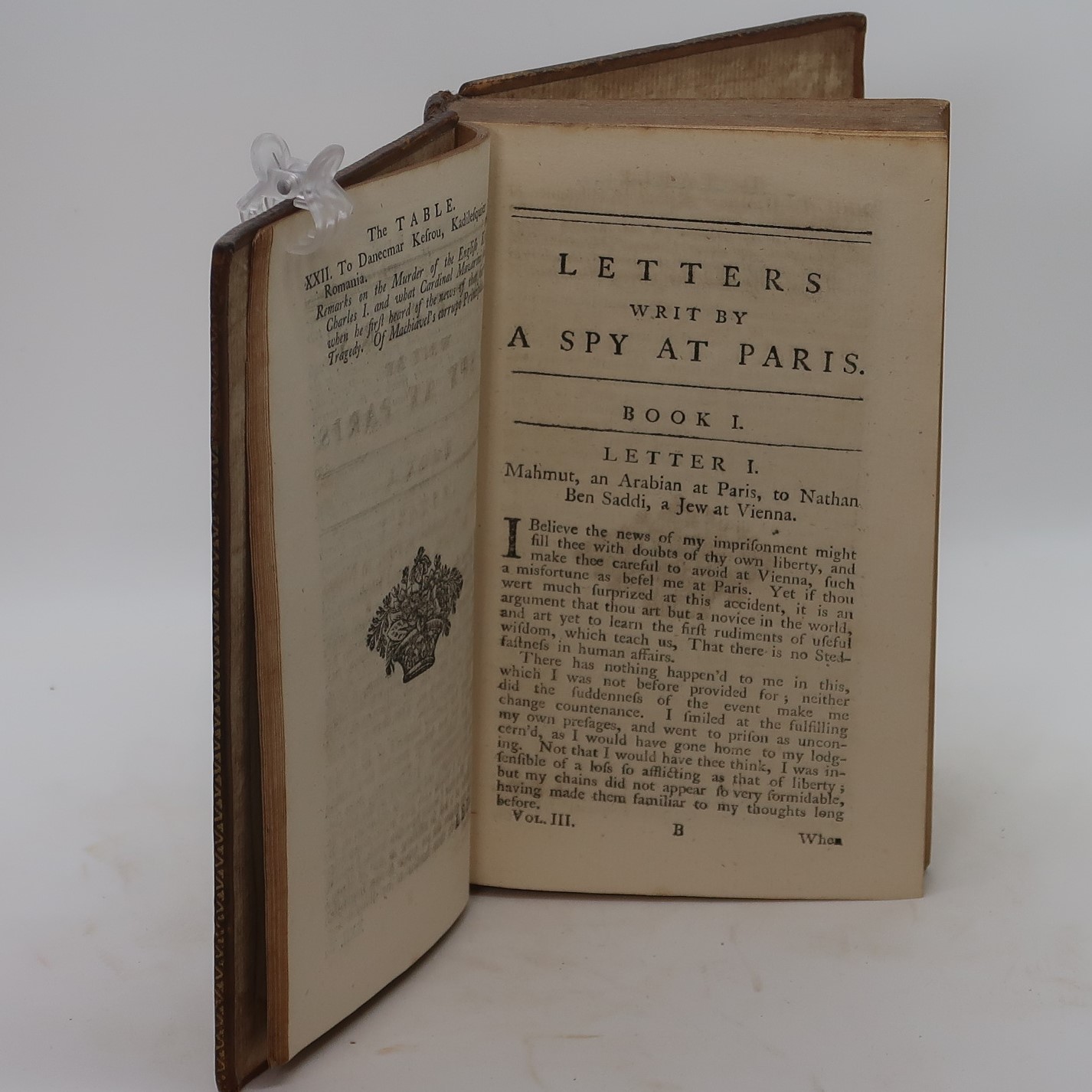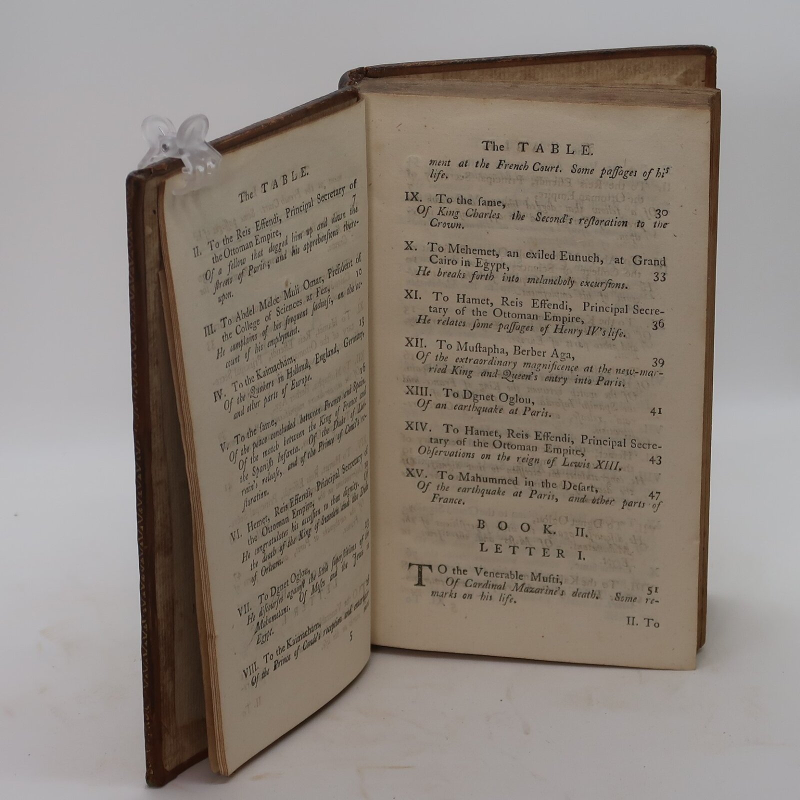 The volumes contain fictional letters written by one “Mahmut the Arabian.” The letters cover the period of 1637 to 1682 in France, from the last years of the Regency of Anne of Austria and Cardinal Richelieu through the long reign of Louis XIV and his minister Cardinal Mazarin. The Letters form a rambling journal of gossip on current politics and satire on society. Mahmut sends reports from Paris to Constantinople on politics and current events in France, but corresponds privately on other subjects including religion, and adds stories and anecdotes for diversion. His observations range from those on political figures such as Richelieu and Mazarin to speculations on the status of women, advice about state policy, and major interventions in controversies about religious doctrine and their consequences. His political position in the letters changes from that of liberal Catholic to that of a rationalistic Deist.