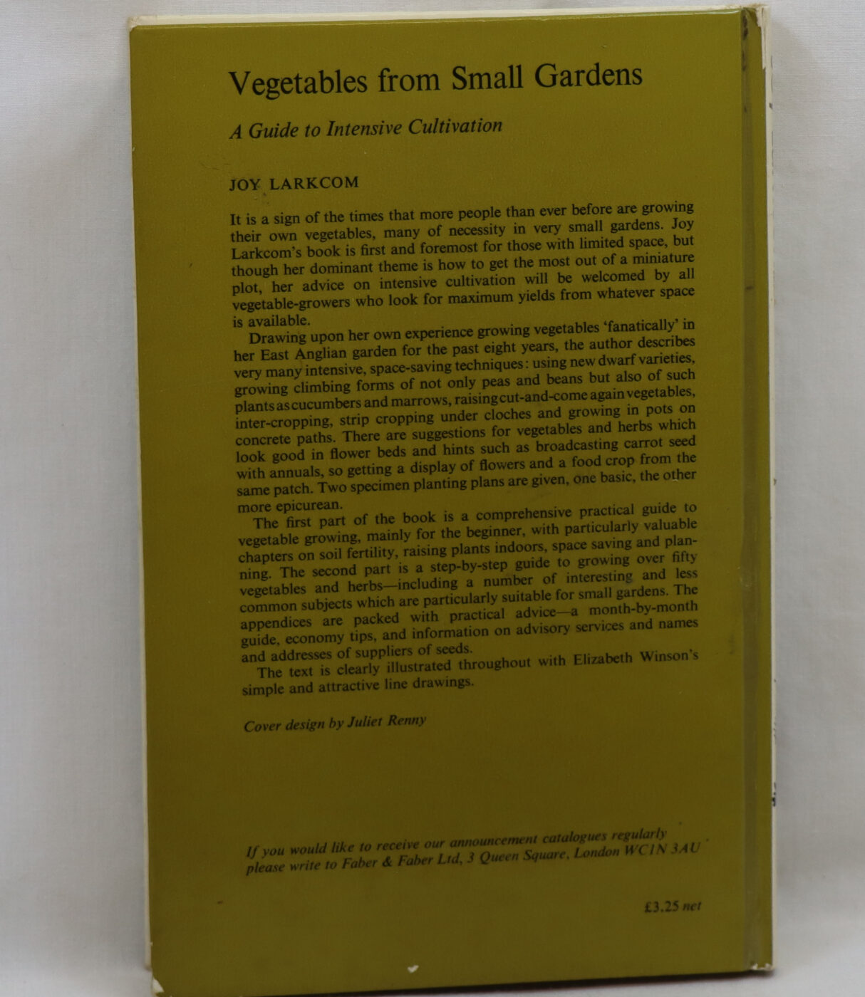 Gives advice on growing herbs and vegetables in a small space, and discusses tools, pests, weeds, cloches, container gardening, and soil preparation