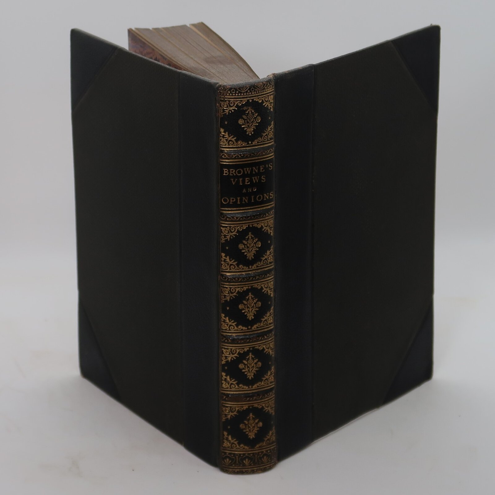 Black leather spine with gilt banding, decoration and title on the spine. Black textured cloth boards.