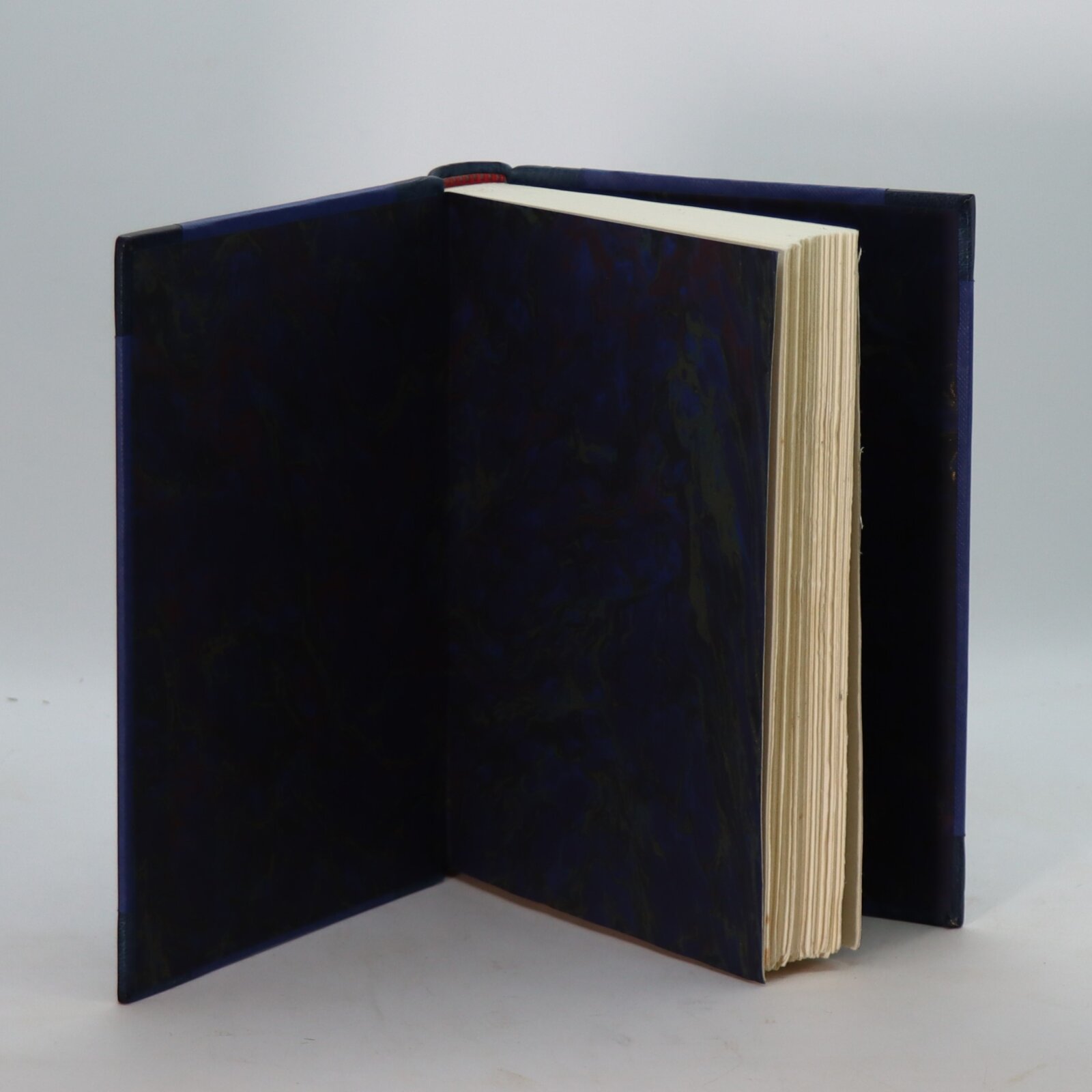 Blue calf spine with black title plate and gilt lettering. Blue cloth boards. Limited edition of 350.