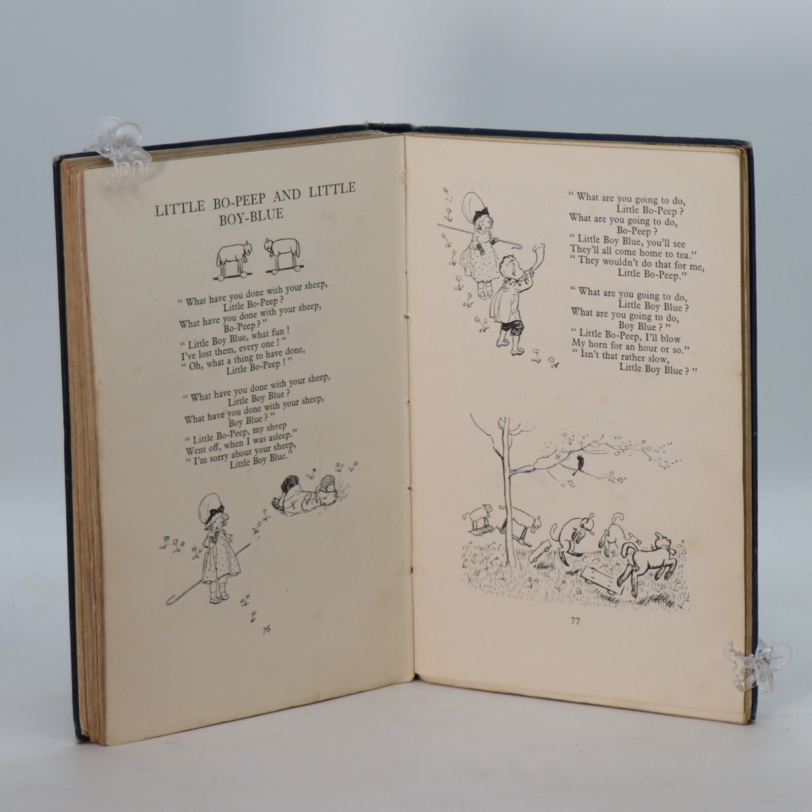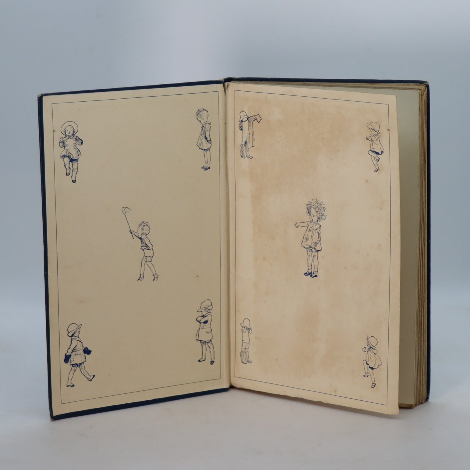 Navy cloth binding with gilt title on the spine. Gilt line border and three gilt figures on the front board. Gilt child on the back board. Third edition printed same year as first.