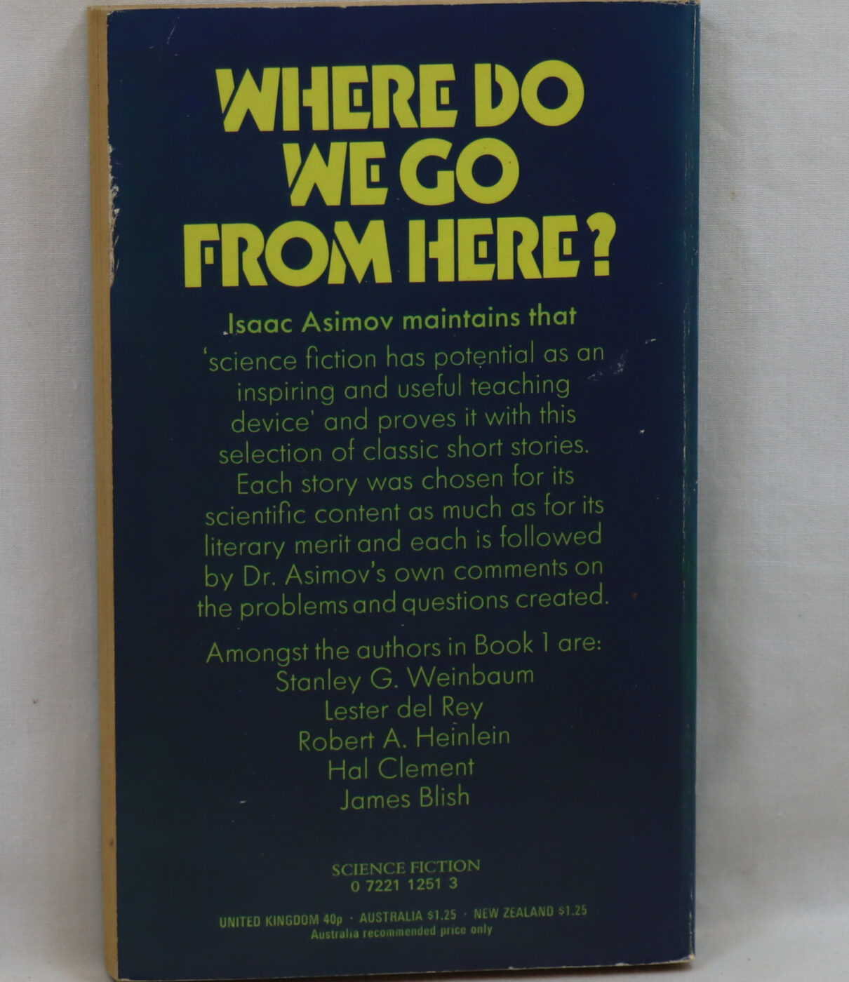 Paperback. Blue cover with yellow and white title.