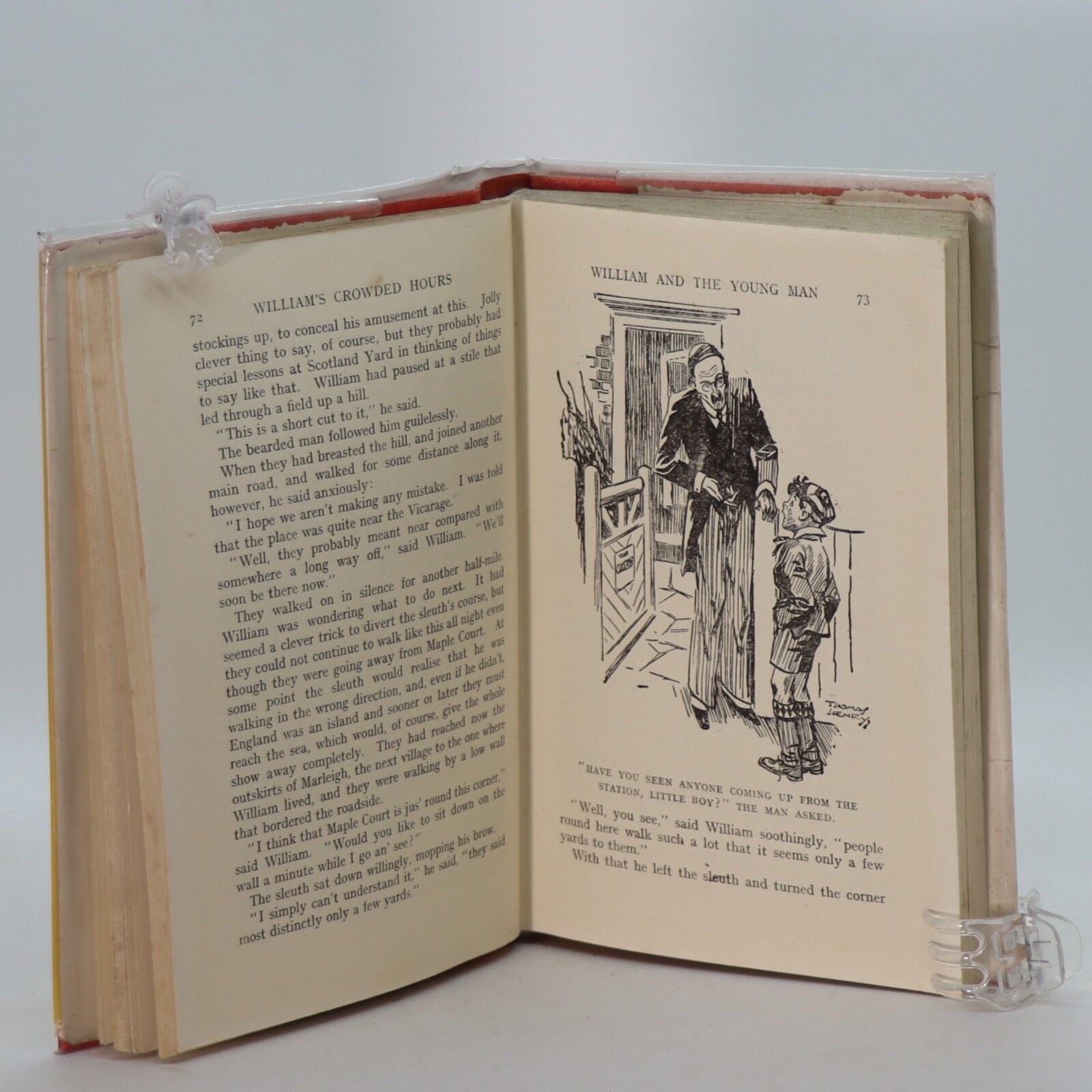 Crompton’s best-known books are the William stories, about a mischievous 11-year-old schoolboy and his band of friends, known as “The Outlaws”. Her first published short story featuring William was “Rice Mould Pudding”, published in Home Magazine in 1919. (She had written “The Outlaws” in 1917, but it was not published until later.) In 1922, the first collection, entitled Just William, was published. She wrote 38 other William books throughout her life. The last, William the Lawless, was published posthumously in 1970.