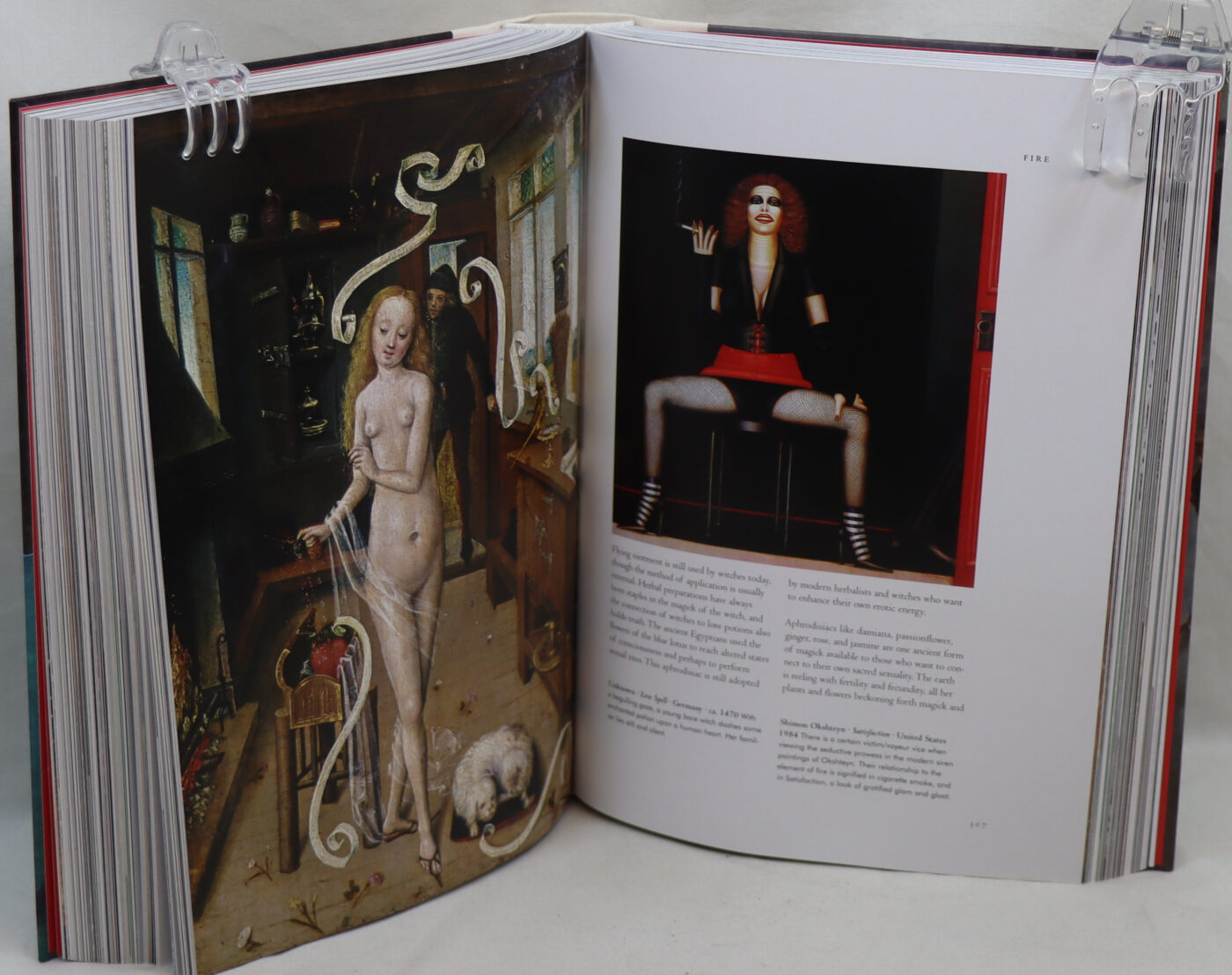 Hardboard binding with white spine. Faust’s dream on back board, Waterhouse painting on the front board. Gilt title on the spine and front board.